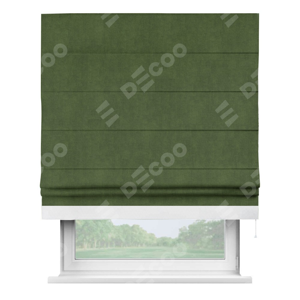 Римская штора «Кортин» с кантом Джестер, для проема, ткань вельвет тёмно-салатовый