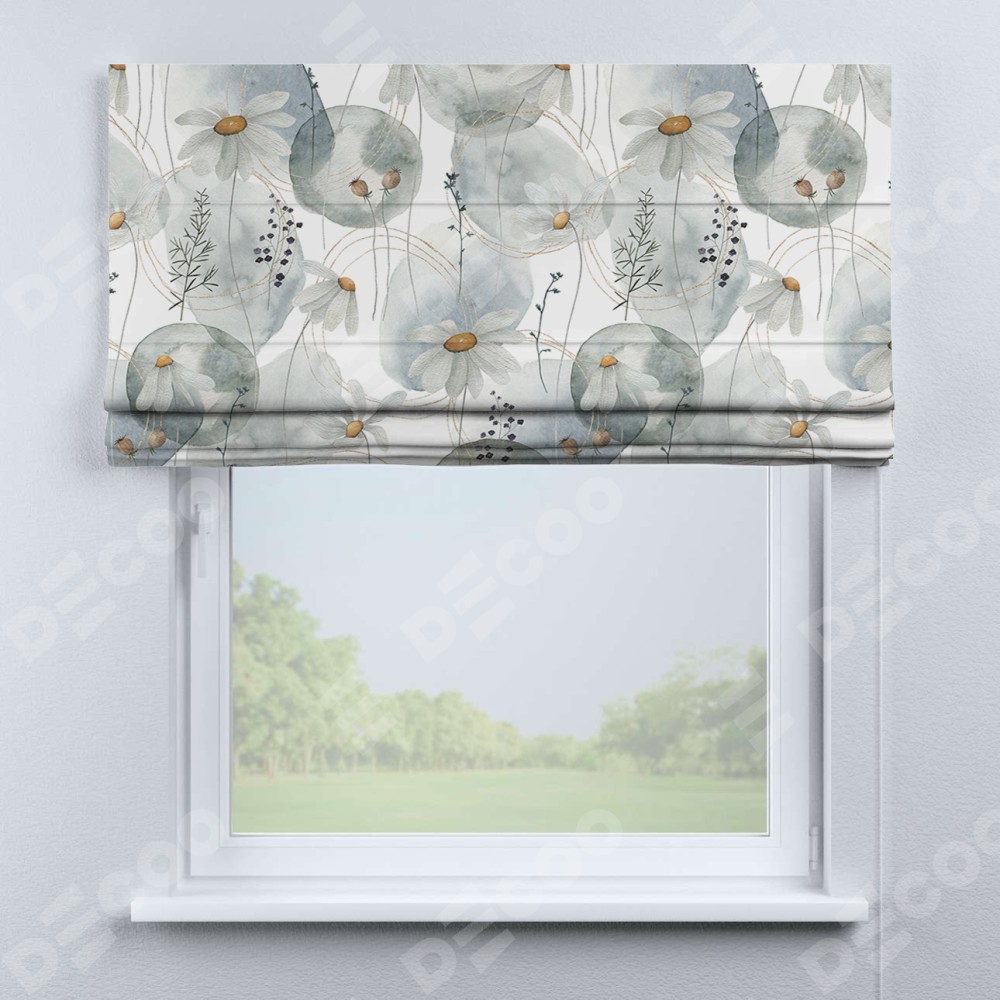 Римская штора «Кортин» для проема «Ромашки акварель»