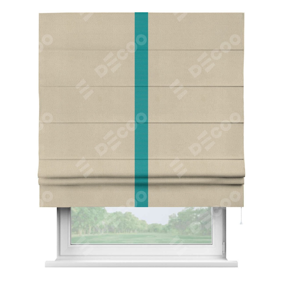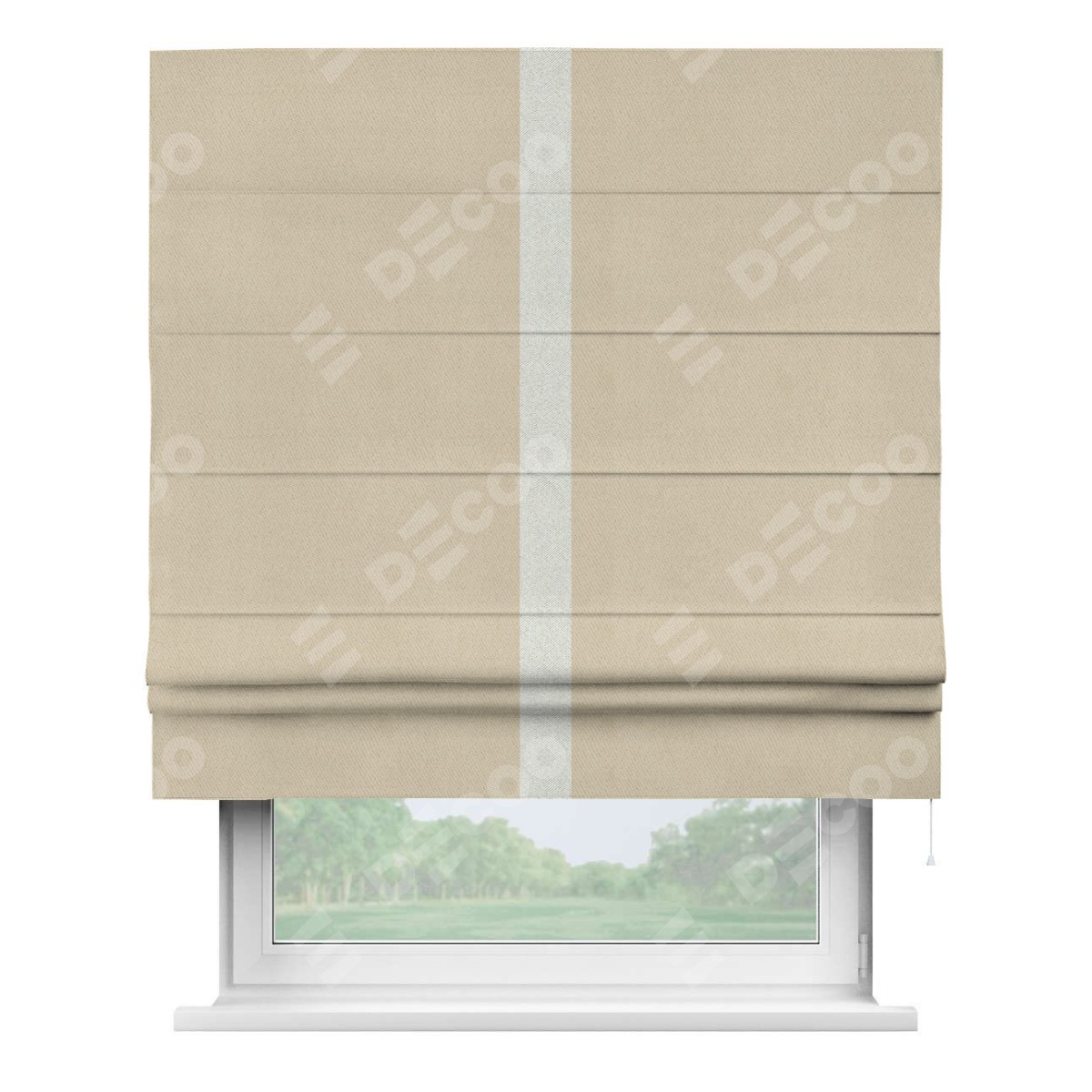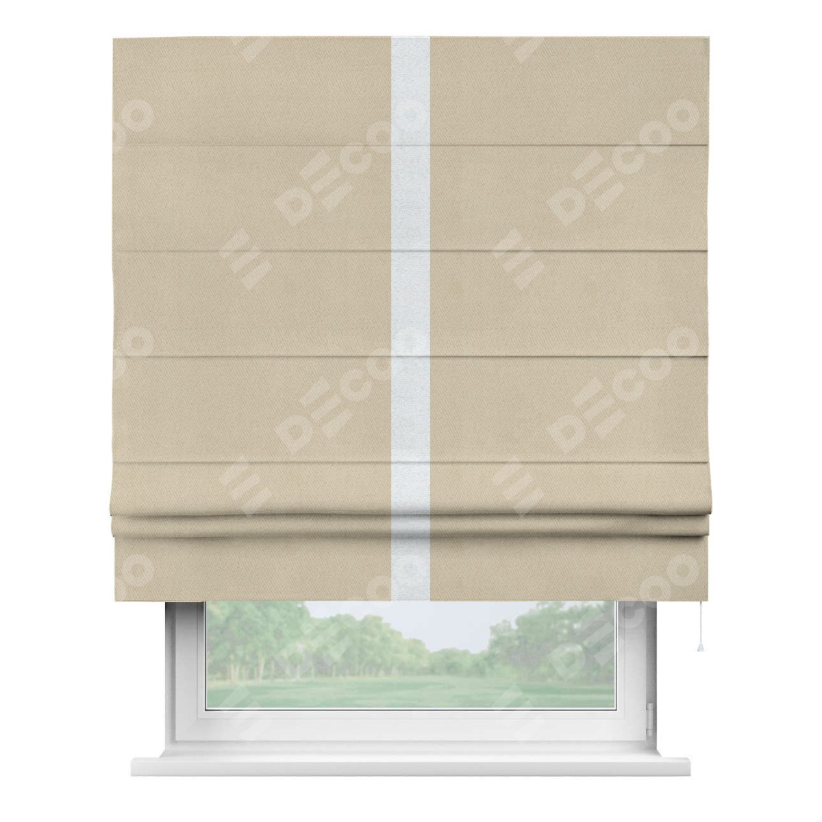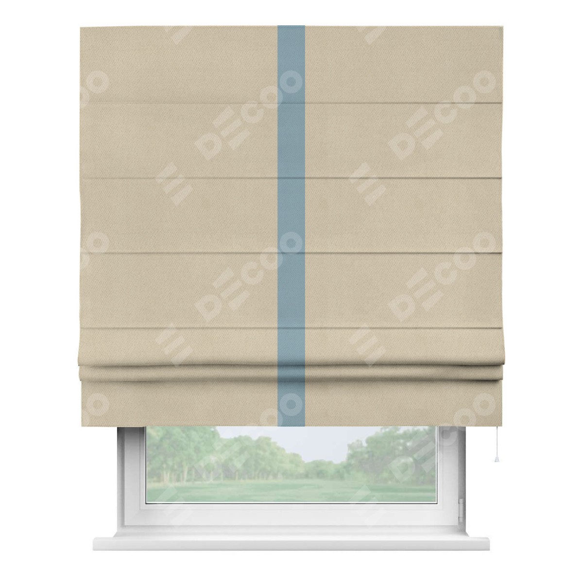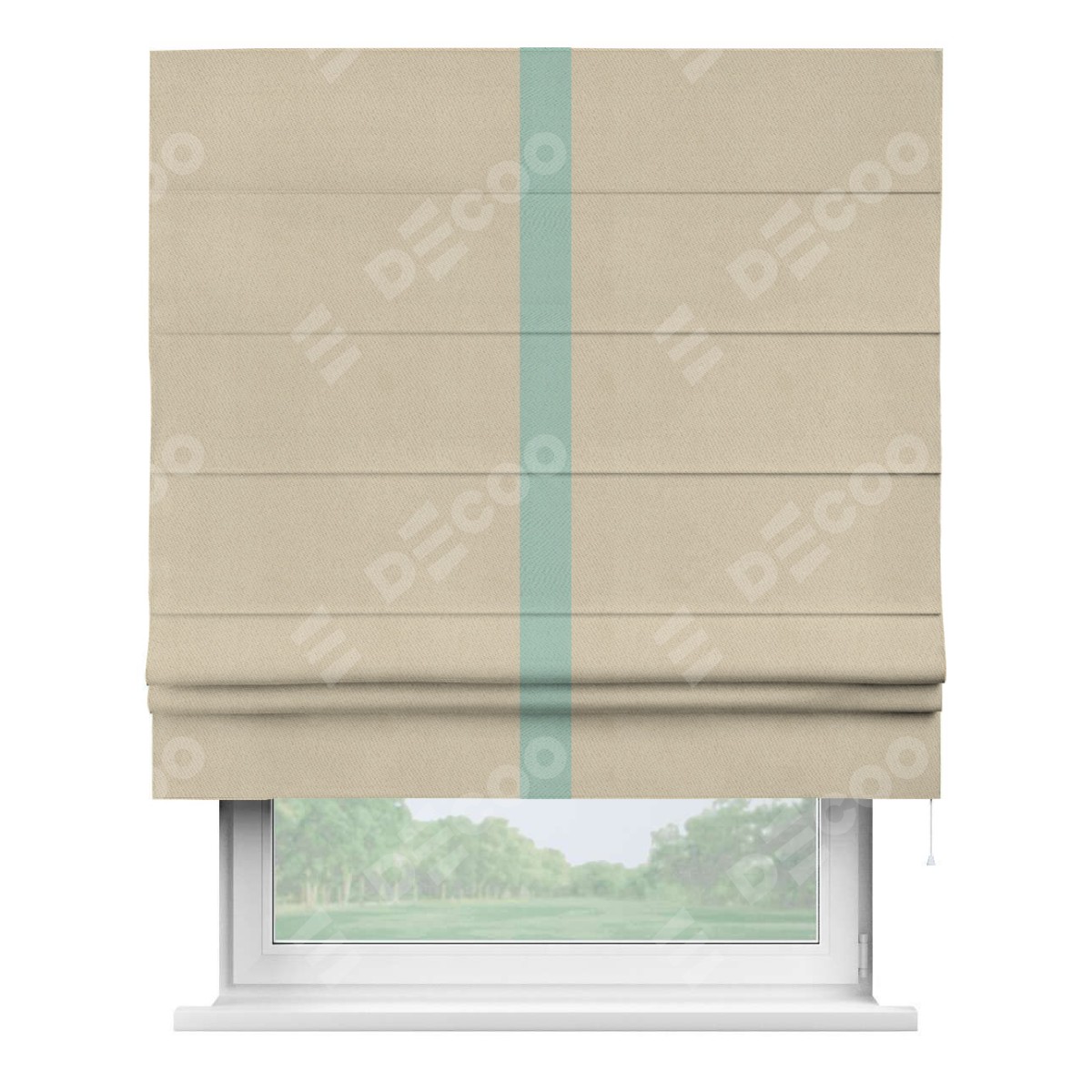 Римская штора производителя «Cortin», используется для проёма, пошита из ткани блэкаут однотонный кофейно-бежевый, артикул ткани 12095−1. Отделка шторы кантом «Хайвей», ткань для канта используется из блэкаута однотонного разной расцветки на выбор. Имеет универсальный механизм и подходит для монтажа: на потолок, на стену и в нишу.