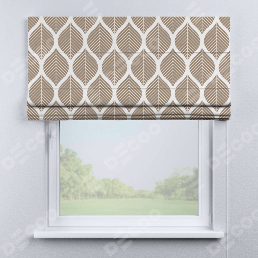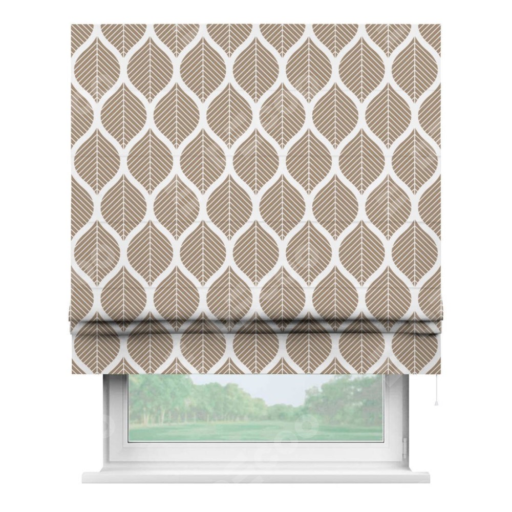 Римская штора «Кортин» для проема «Листья геометрия» отлично подойдёт для интерьера: в кухню, на балкон и в спальню.