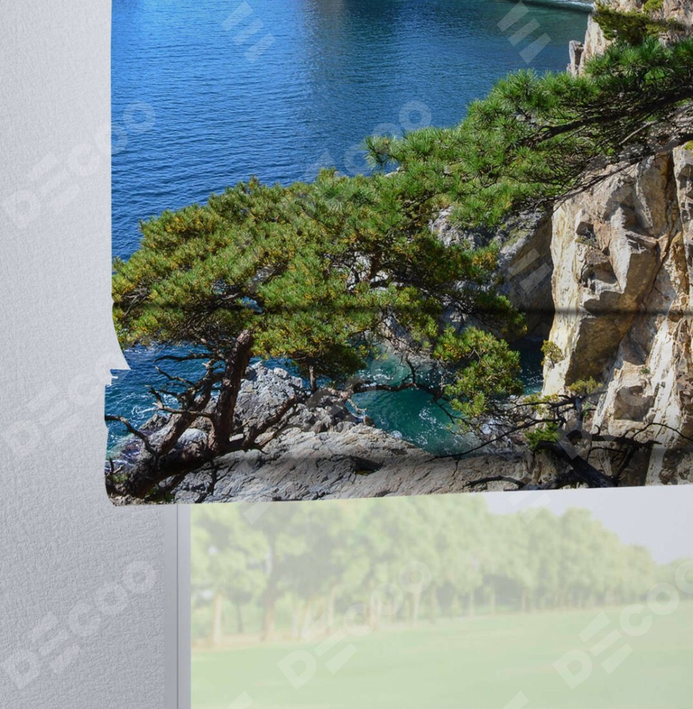 Римская штора на петлях «Море и сосны» предоставлена в следующих характеристиках: