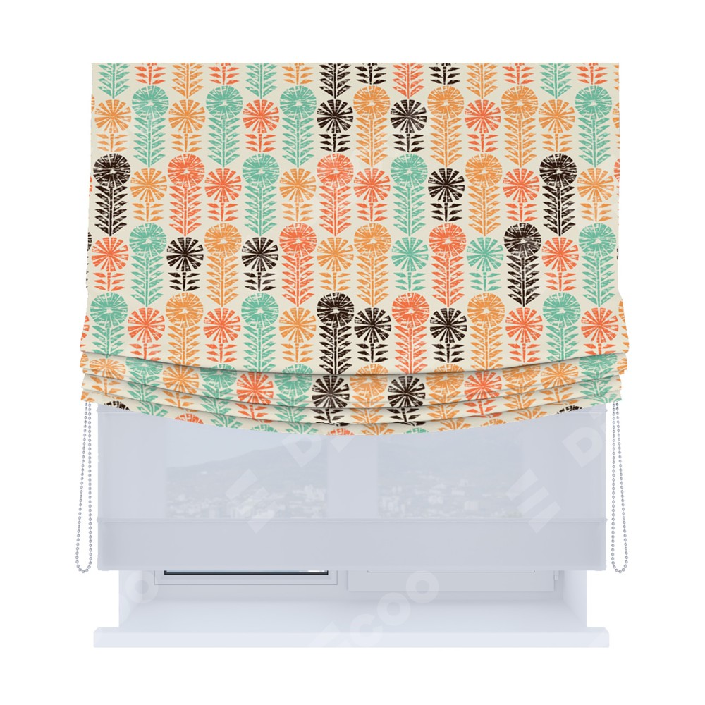Римская штора «Кортин», день-ночь с мягкими складками, «Бархатные цветы»