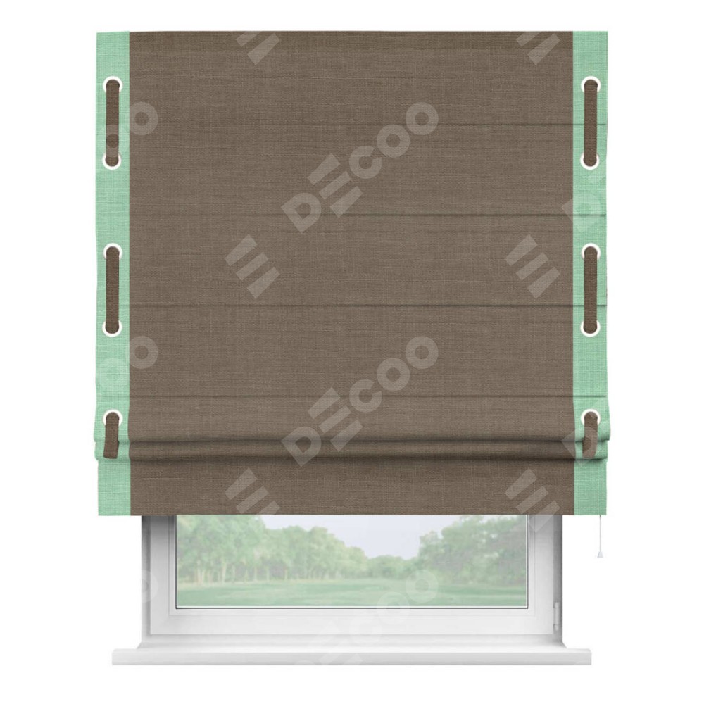 Римская штора «Кортин» с кантом Стрим Дуо (люверсы с пояском), для проема, ткань лён мокко