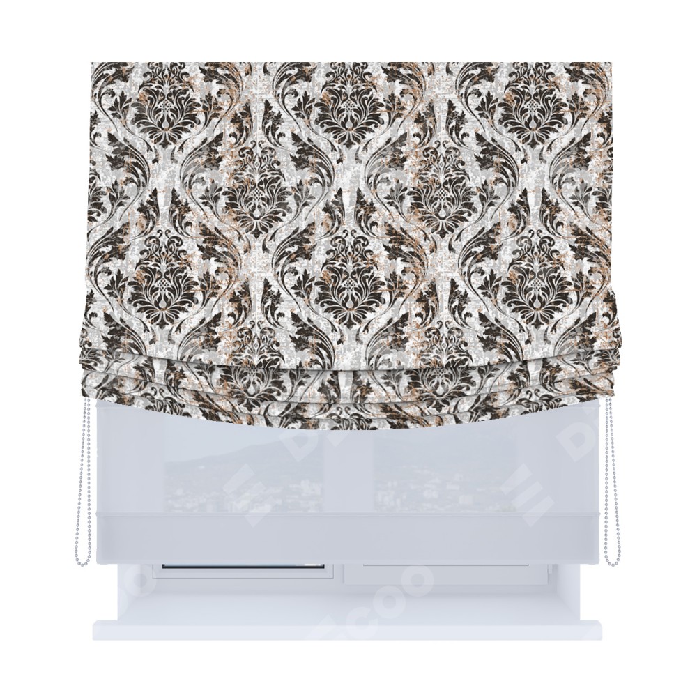 Римская штора «Кортин», день-ночь с мягкими складками, «Дамаск тёмный»