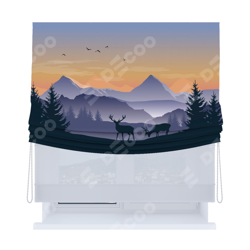 Римская штора «Кортин», день-ночь с мягкими складками, «Закат в горах»