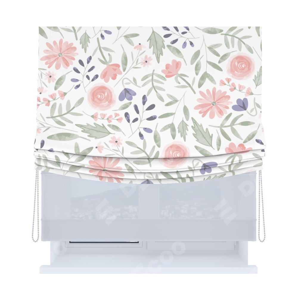 Римская штора «Кортин», день-ночь с мягкими складками, «Изысканные цветы»
