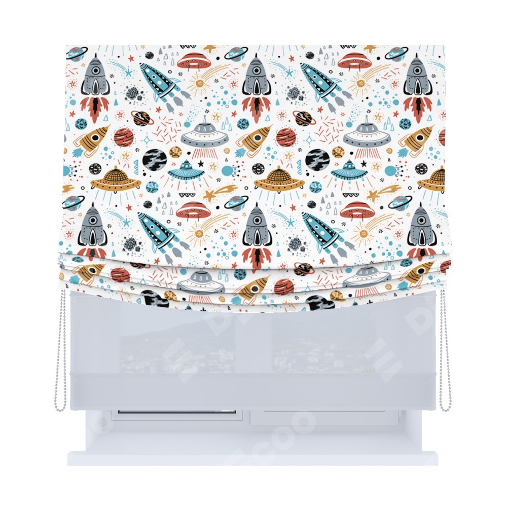 Римская штора «Кортин», день-ночь с мягкими складками, «Космическое приключение»