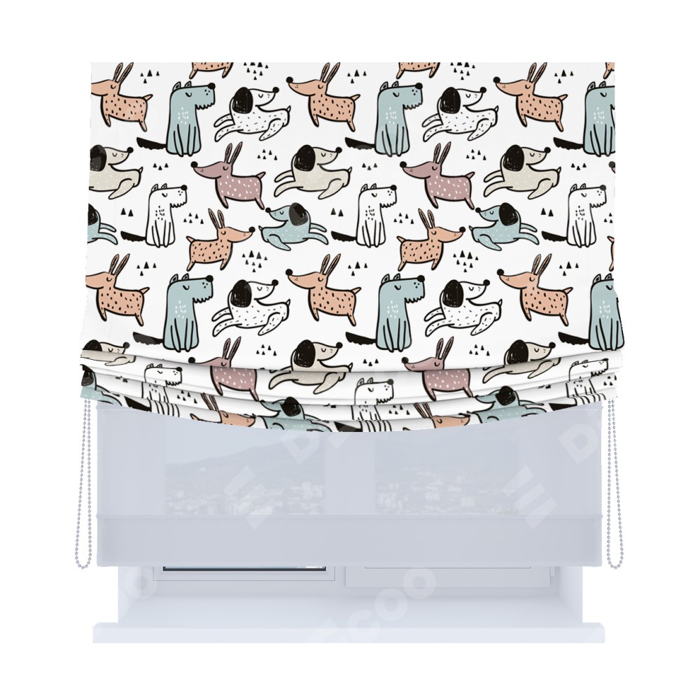 Римская штора «Кортин», день-ночь с мягкими складками, «Очаровательные щеночки»