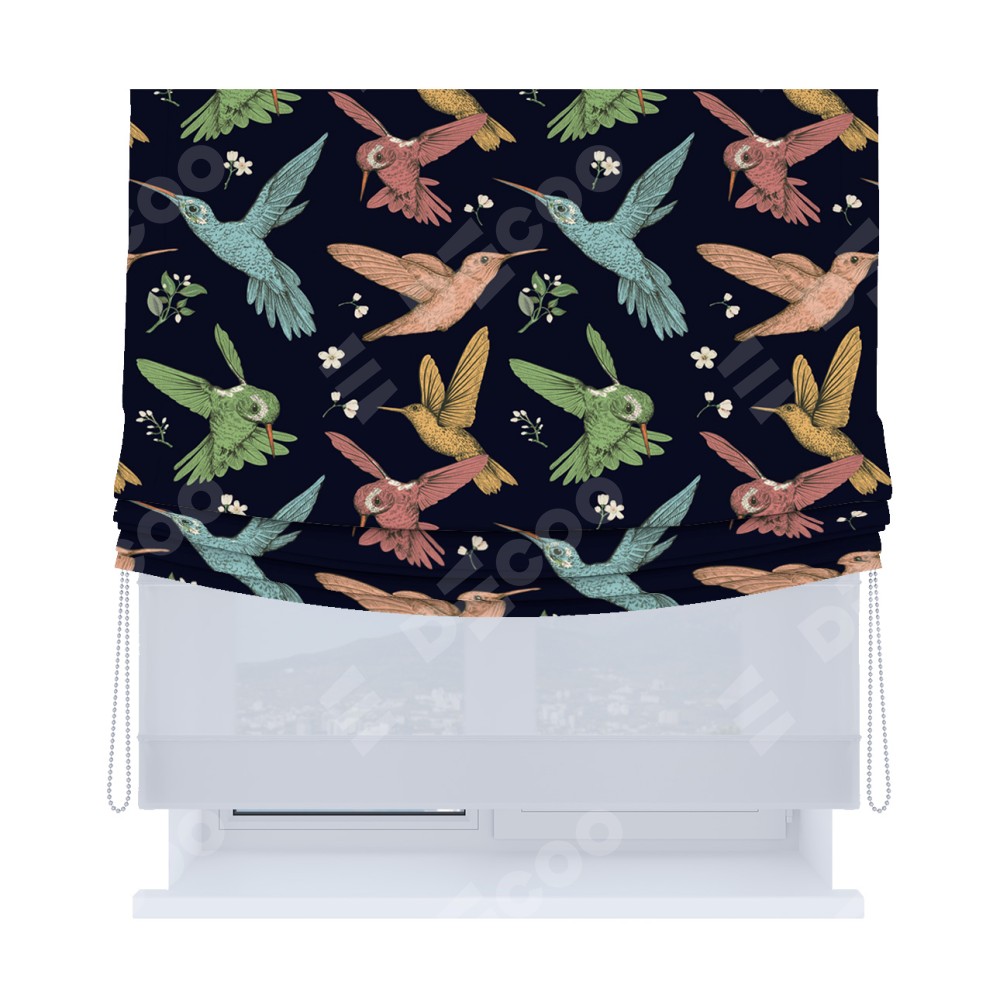 Римская штора «Кортин», день-ночь с мягкими складками, «Птицы и цветы» доступна к заказу по любым размерам. Её артикул: 25275. Стоимость будет зависеть от размерных характеристик и стартует от 5 300 руб. В интернет-магазине Decoo вы можете купить товар в любых вариациях.
