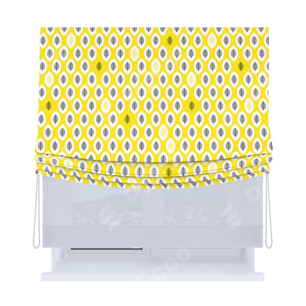 Римская штора «Кортин», день-ночь с мягкими складками, «Солнечные листья» доступна к заказу по по вашим размерам. Заводской артикул: 25324. будет зависеть от заданных параметров и будет начинаться от 5 300 руб. В интернет-магазине Decoo есть возможность выбрать товар в любых размерных вариациях.