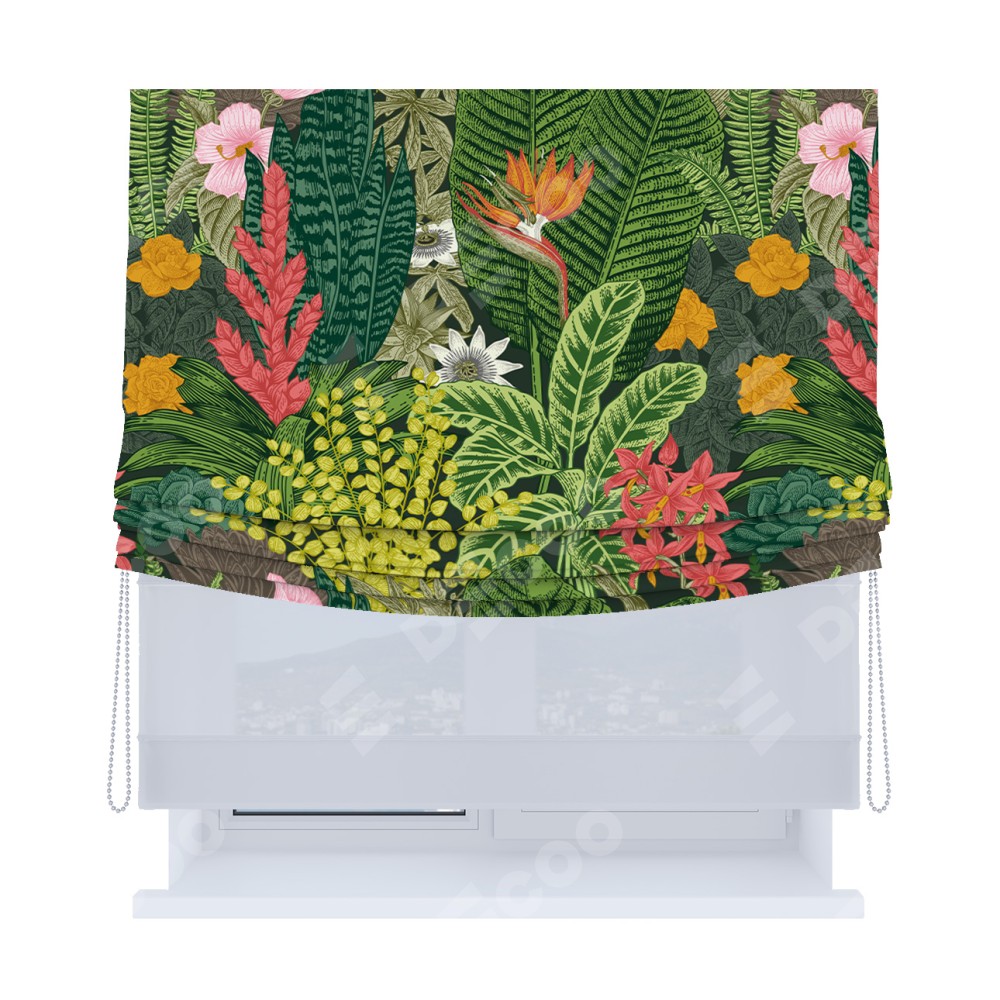 Римская штора «Кортин», день-ночь с мягкими складками, «Яркое цветение»