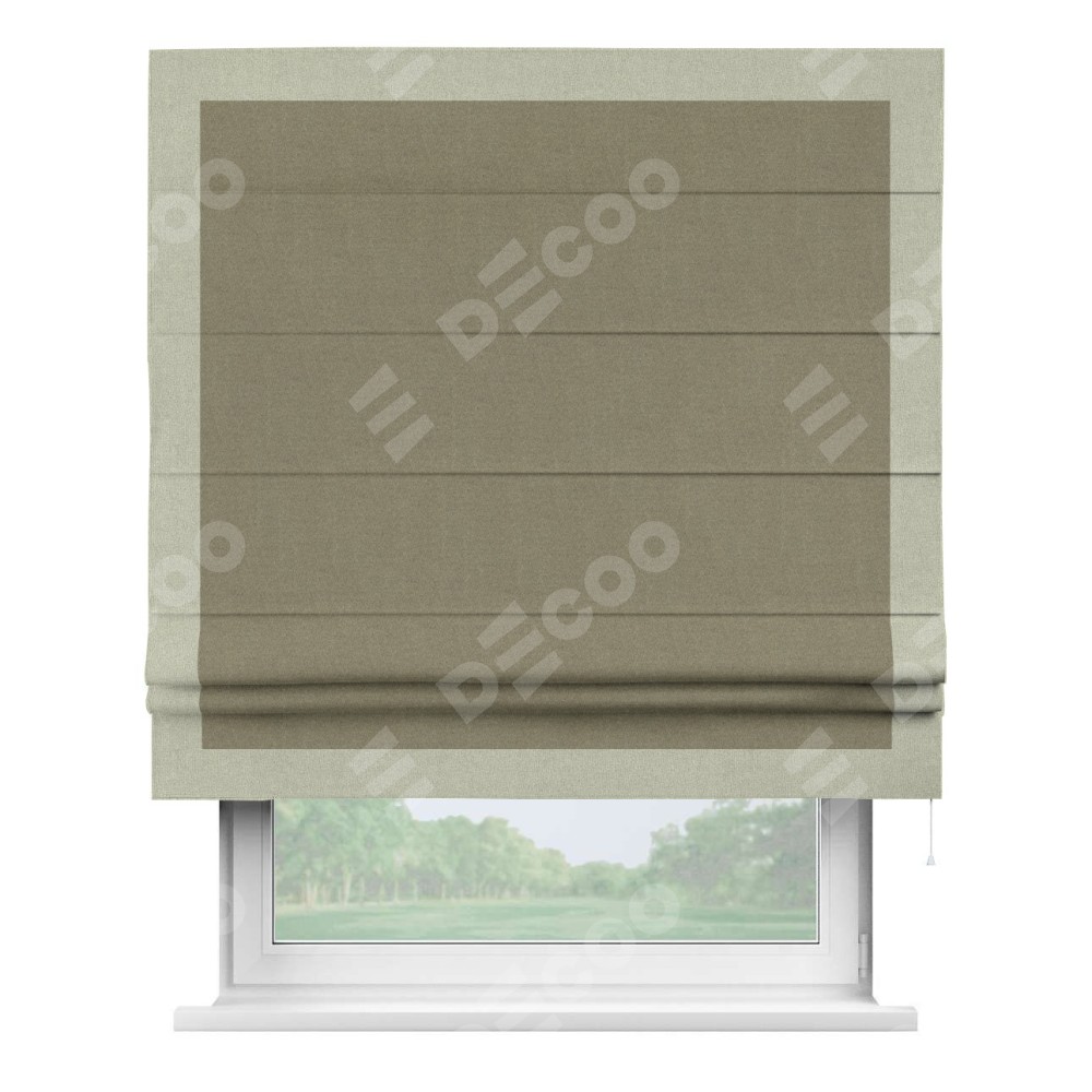 Римская штора производителя «Cortin», используется для проёма, пошита из ткани лён блэкаут бежевый, артикул 69435. Отделка шторы кантом «Чесс», ткань для канта используется из льна разной расцветки на выбор. Имеет универсальный механизм и подходит для монтажа: на потолок, на стену и в нишу.