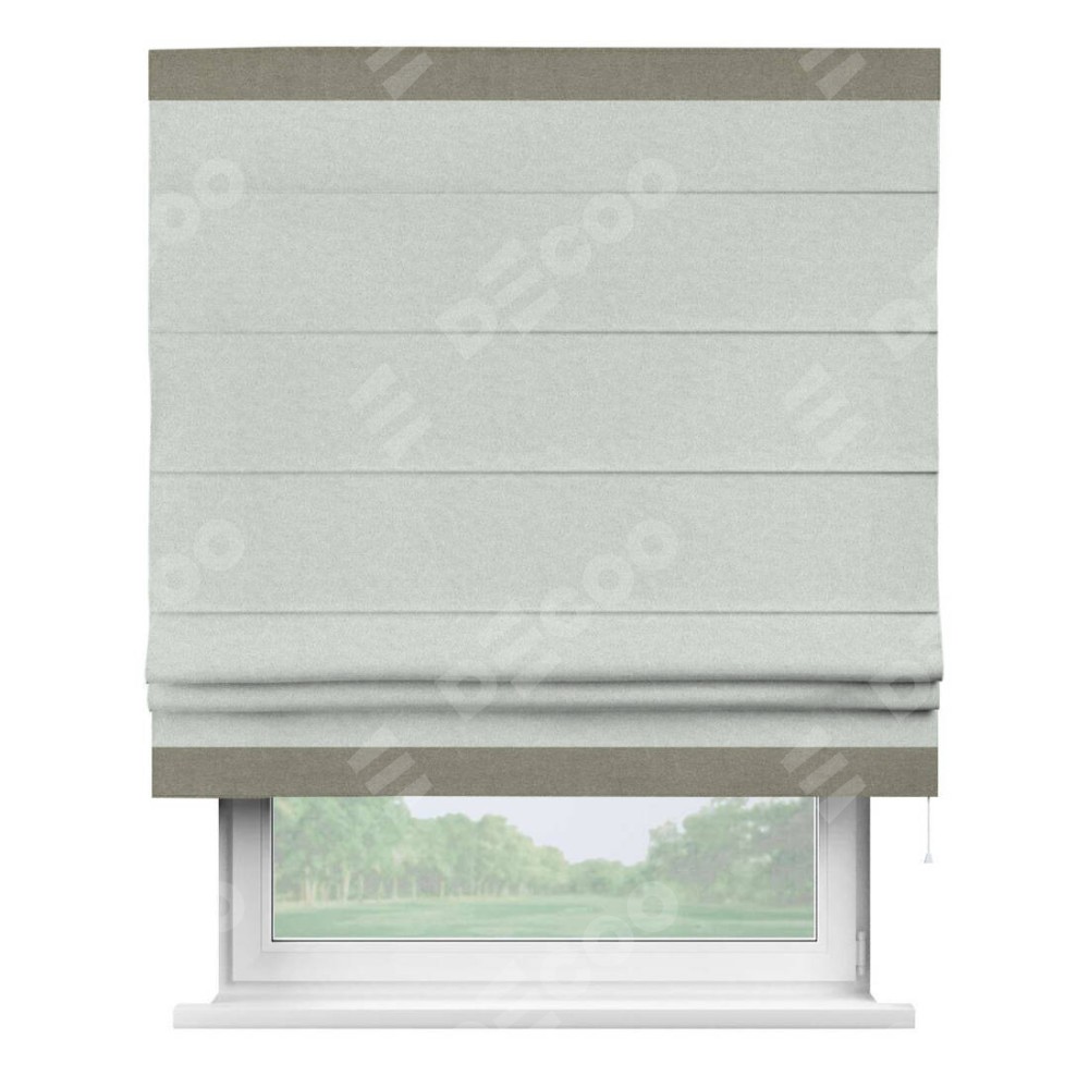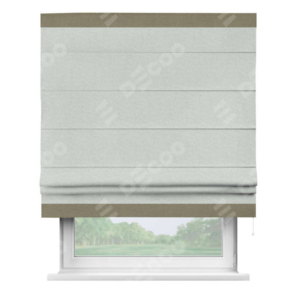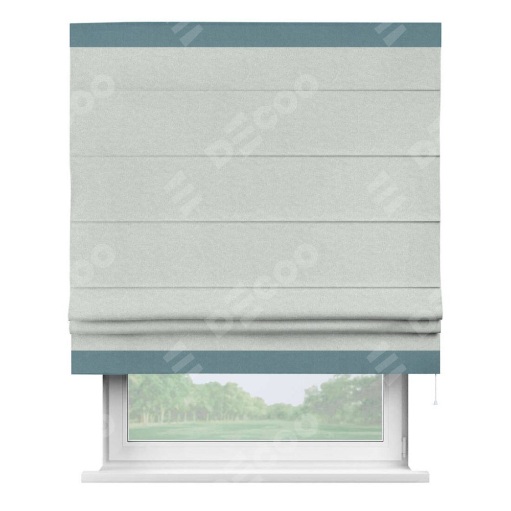 Римская штора производителя «Cortin», используется для проёма, пошита из ткани лён блэкаут белый, артикул 69451. Отделка шторы кантом «Горизонт», ткань для канта используется из льна разной расцветки на выбор. Имеет универсальный механизм и подходит для монтажа: на потолок, на стену и в нишу.