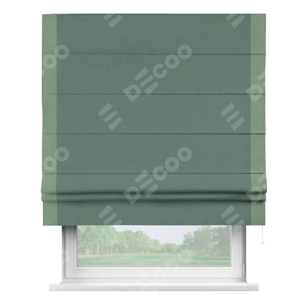 Римская штора «Кортин» с кантом Стрим Дуо, для проема, лён блэкаут бирюзовый