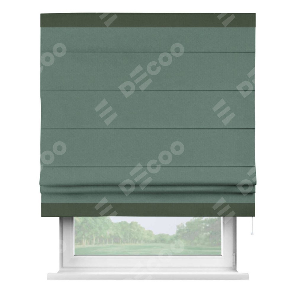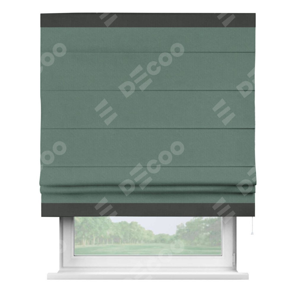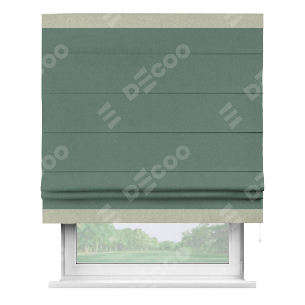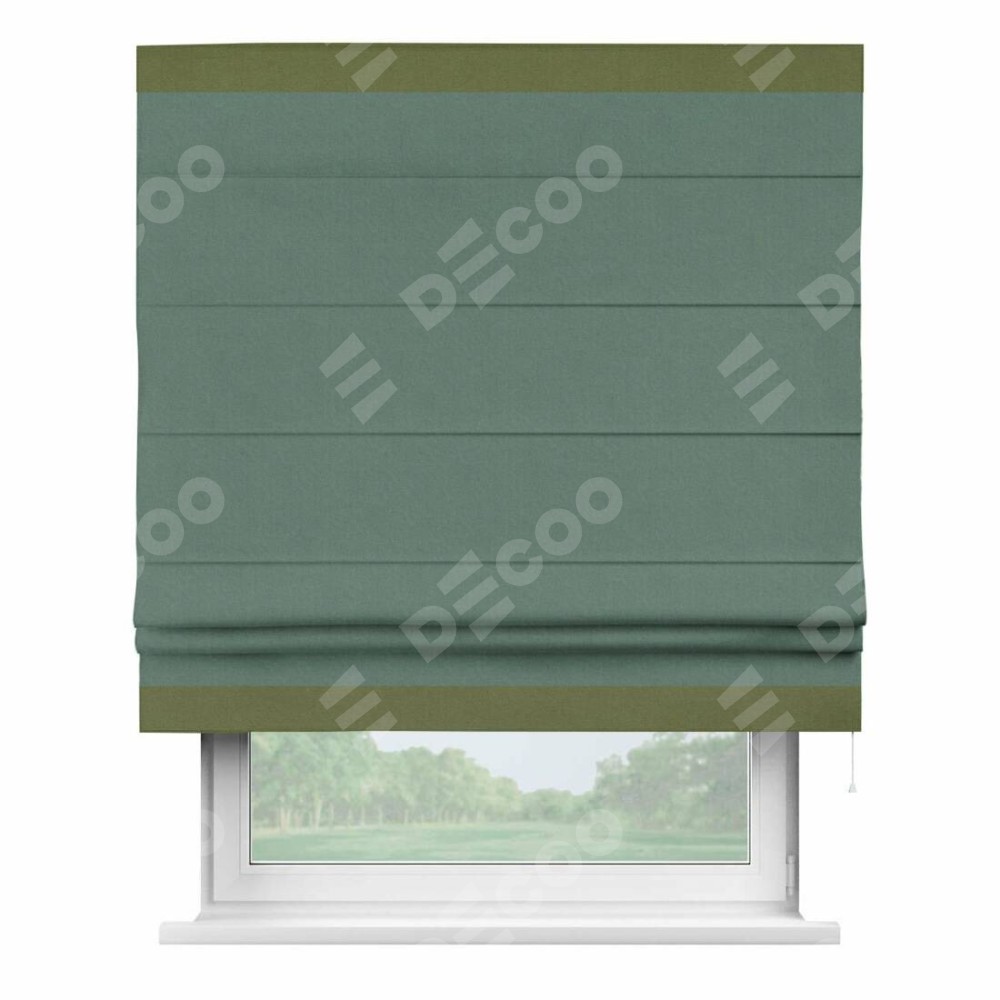 Римская штора «Кортин» с кантом Горизонт, для проема, лён блэкаут бирюзовый