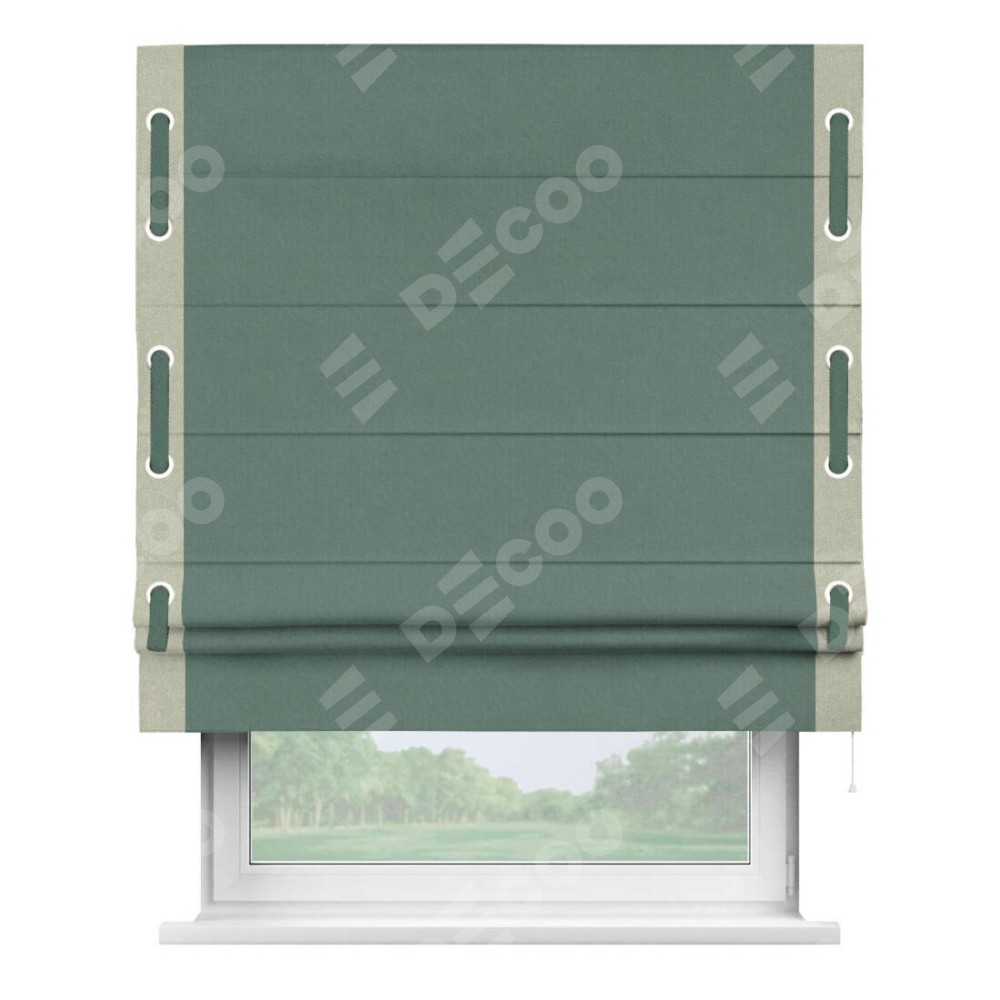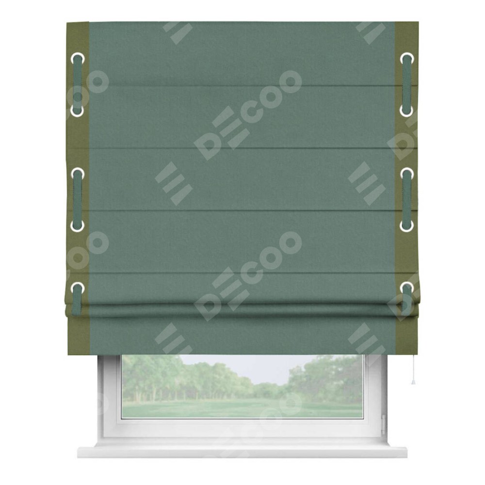 Римская штора «Кортин» с кантом Стрим Дуо (люверсы с пояском), для проема, лён блэкаут бирюзовый