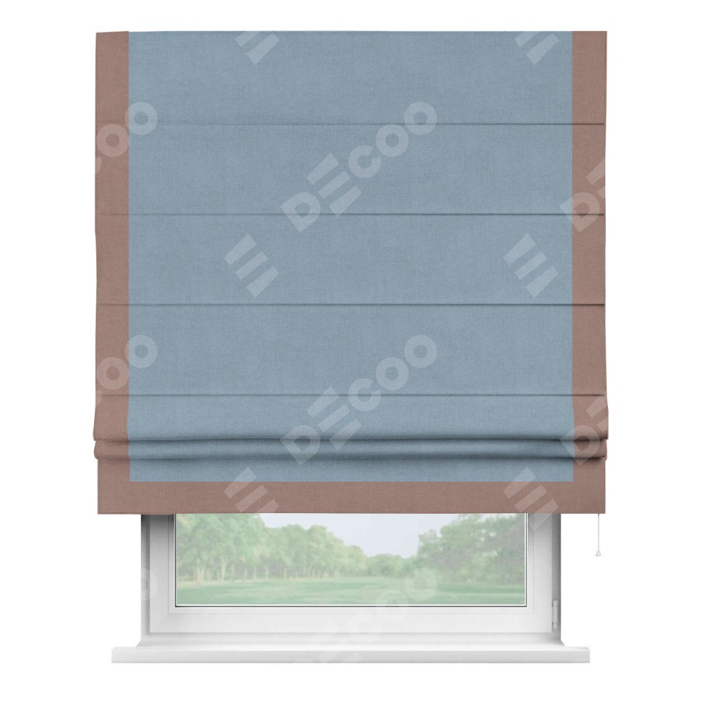 Римская штора «Кортин» с кантом Виктория, для проема, лён блэкаут голубой
