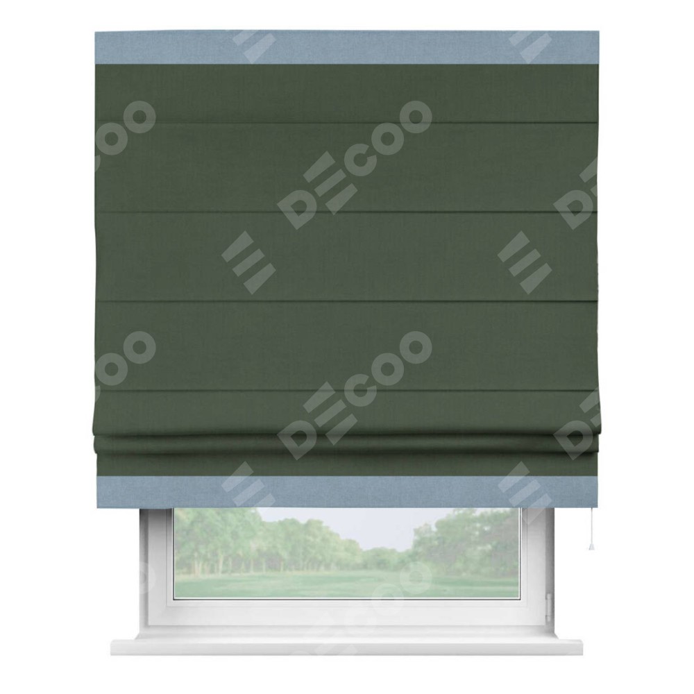 Римская штора «Кортин» с кантом Горизонт, для проема, лён блэкаут зелёный