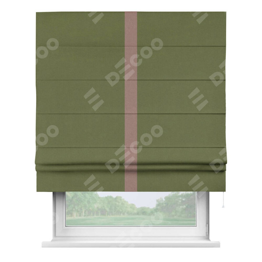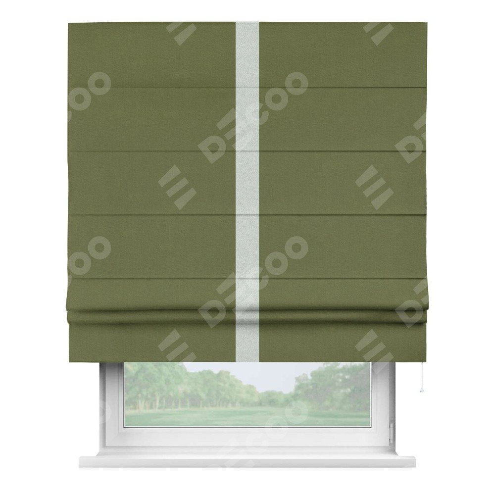 Римская штора «Кортин» с кантом Хайвэй, для проема, лён блэкаут оливковый