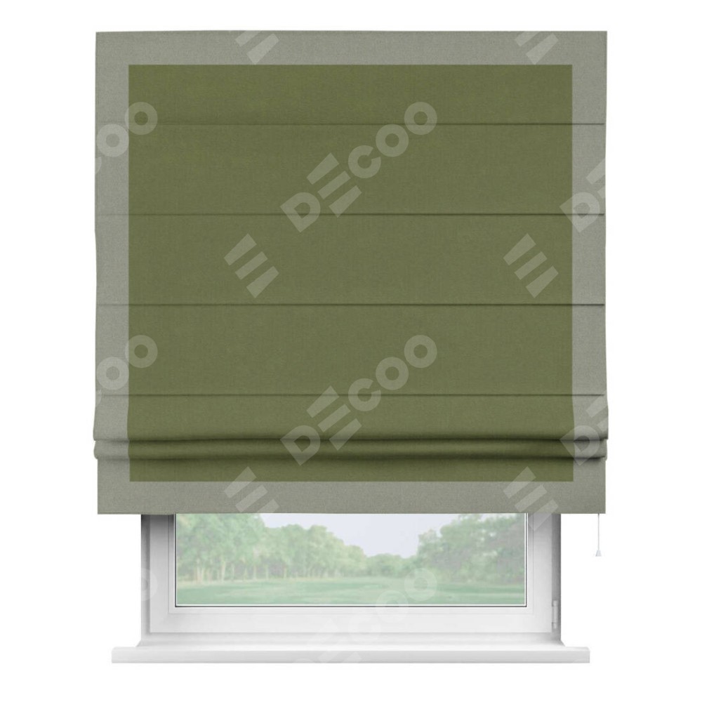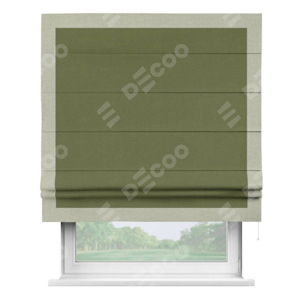 Римская штора «Кортин» с кантом Чесс, для проема, лён блэкаут оливковый
