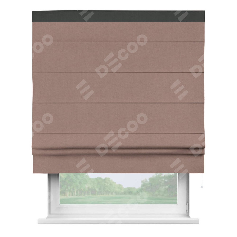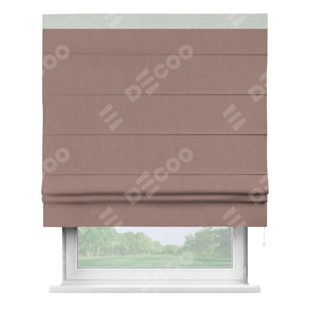 Римская штора производителя «Cortin», используется для проёма, пошита из ткани лён блэкаут розовый, артикул 69575. Отделка шторы кантом «Кинг», ткань для канта используется из льна разной расцветки на выбор. Имеет универсальный механизм и подходит для монтажа: на потолок, на стену и в нишу.