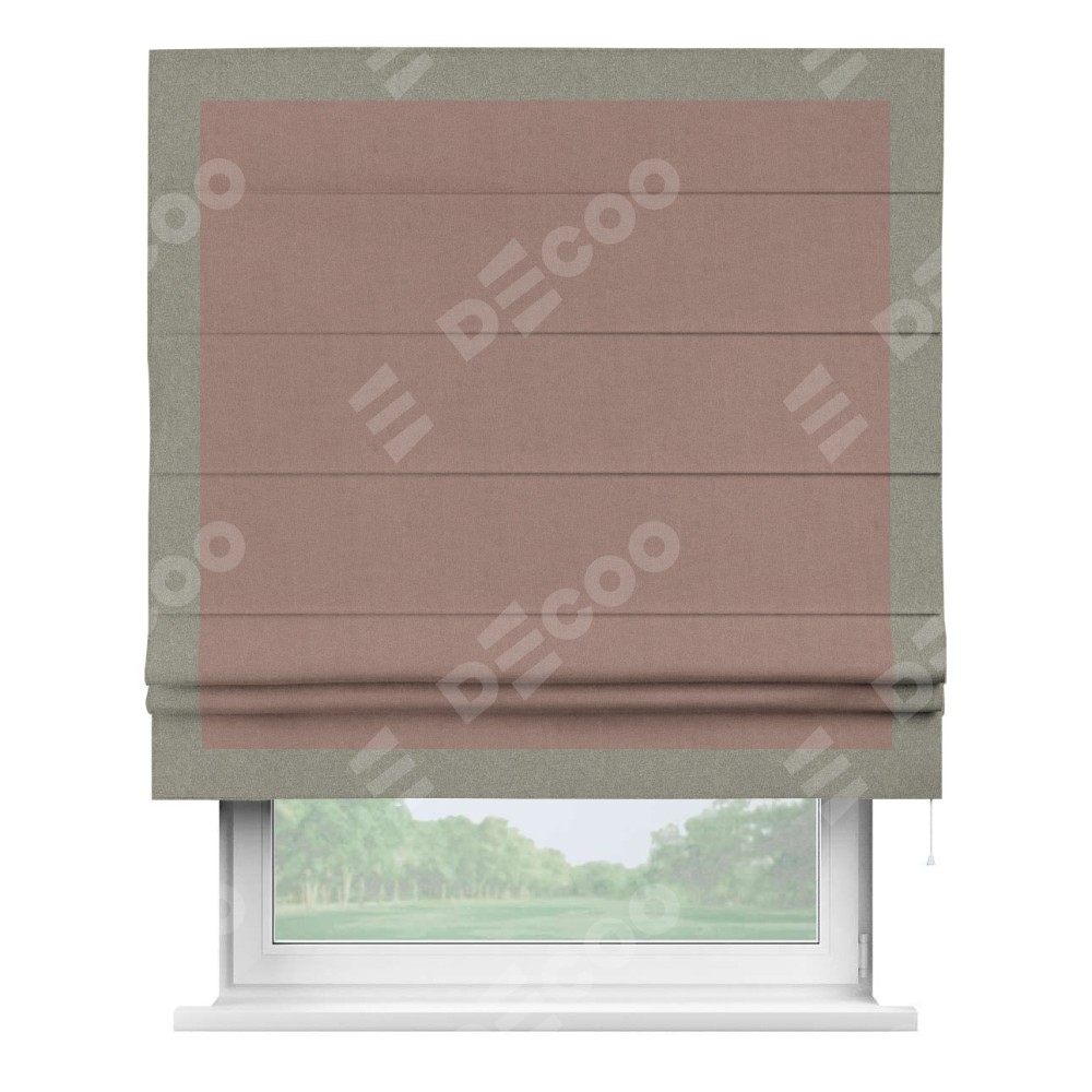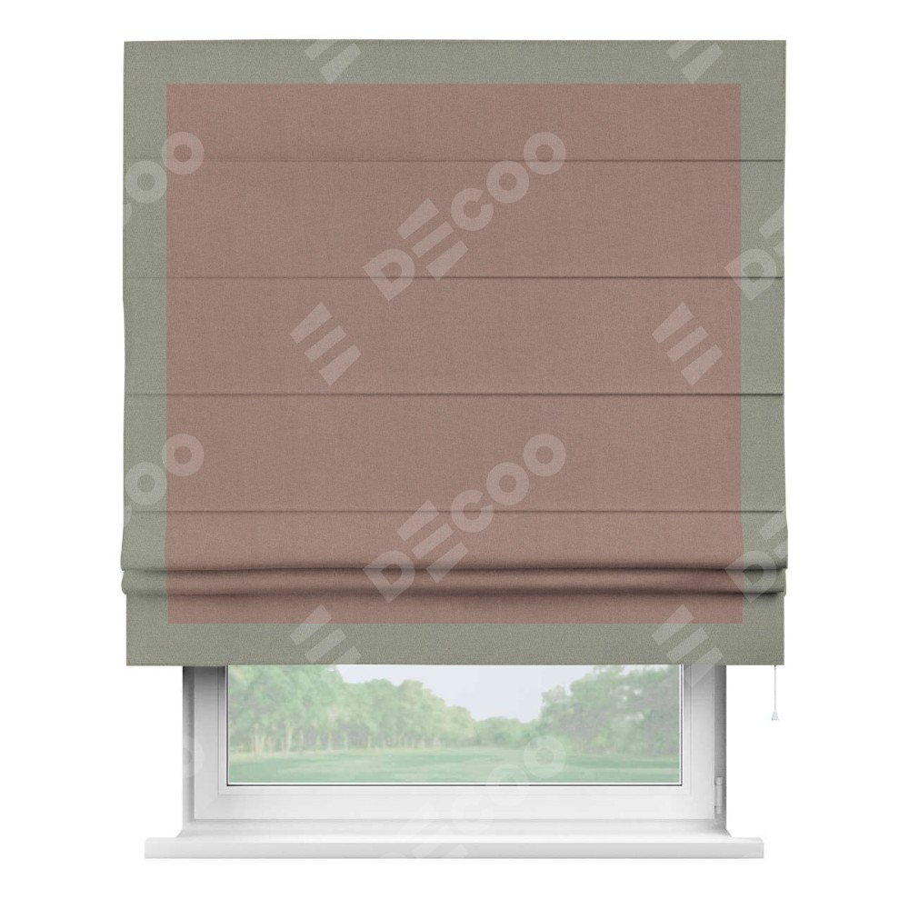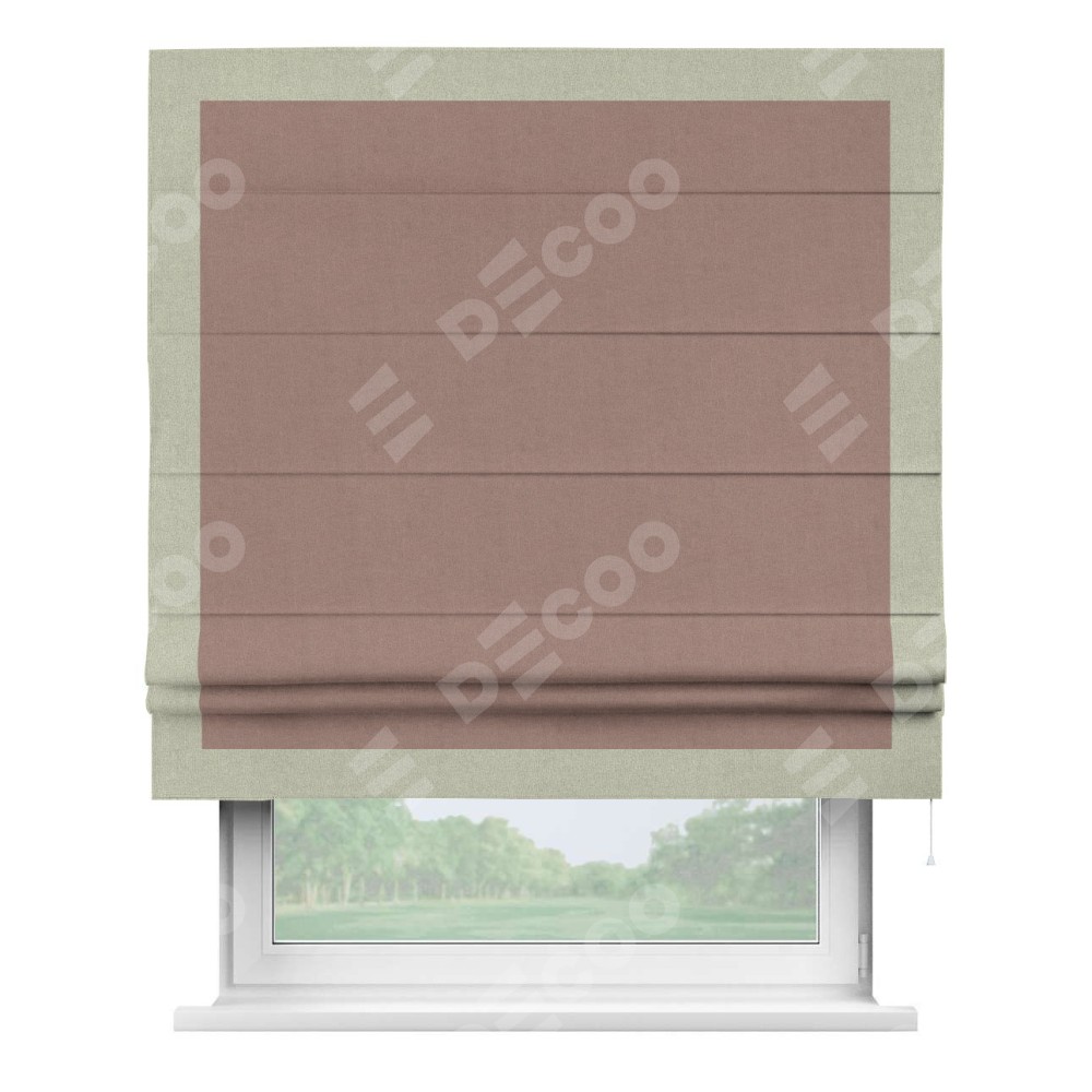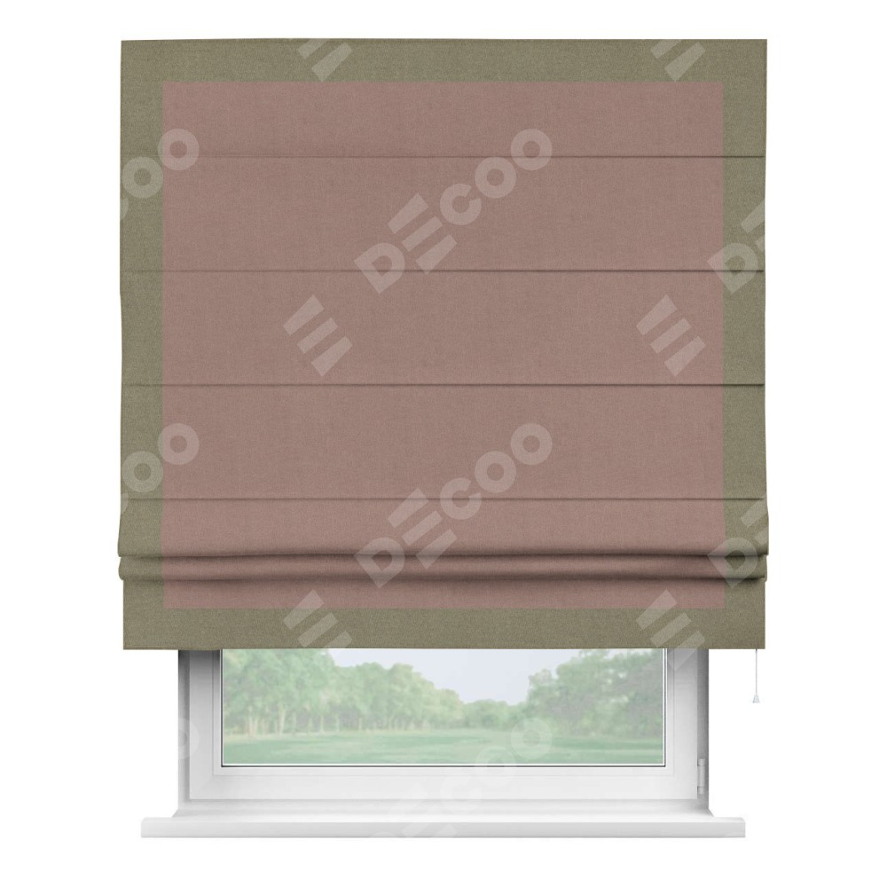 Римская штора «Кортин» с кантом Чесс, для проема, лён блэкаут розовый