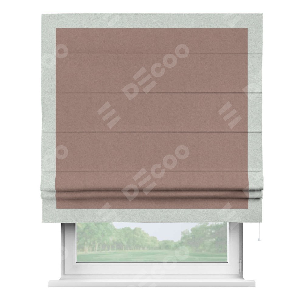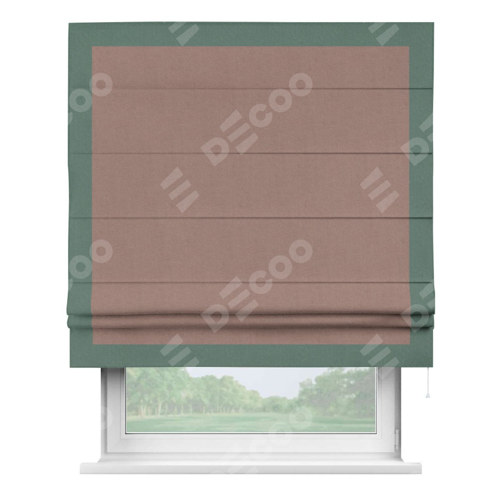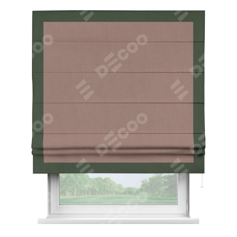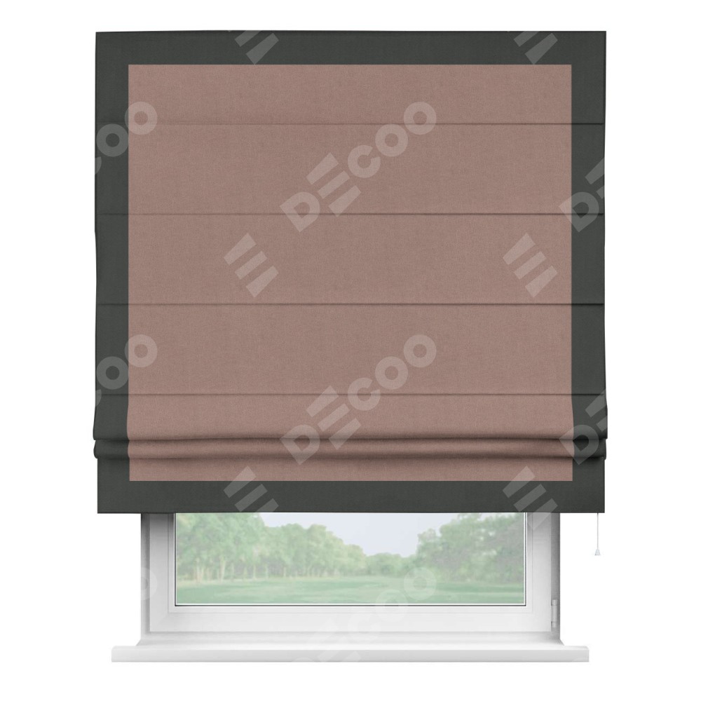 Римская штора «Кортин» с кантом Чесс, для проема, лён блэкаут розовый