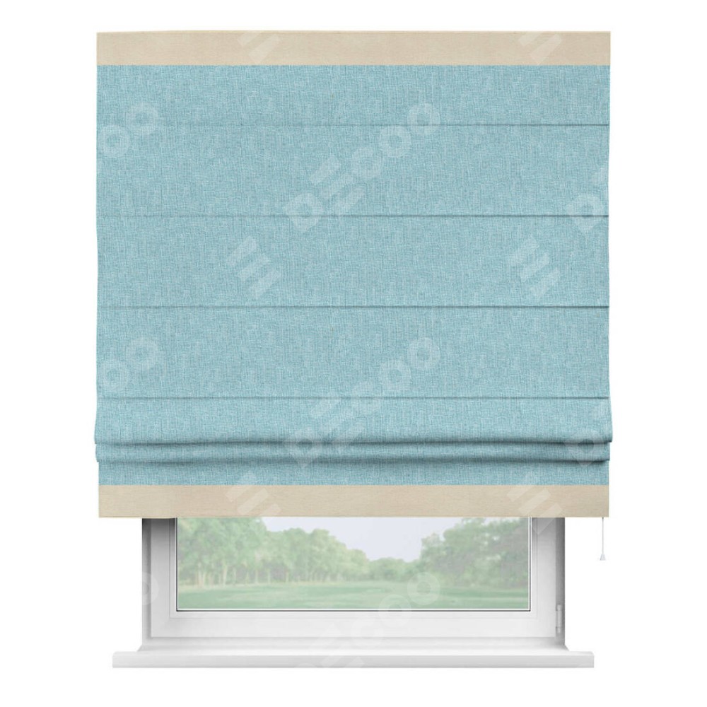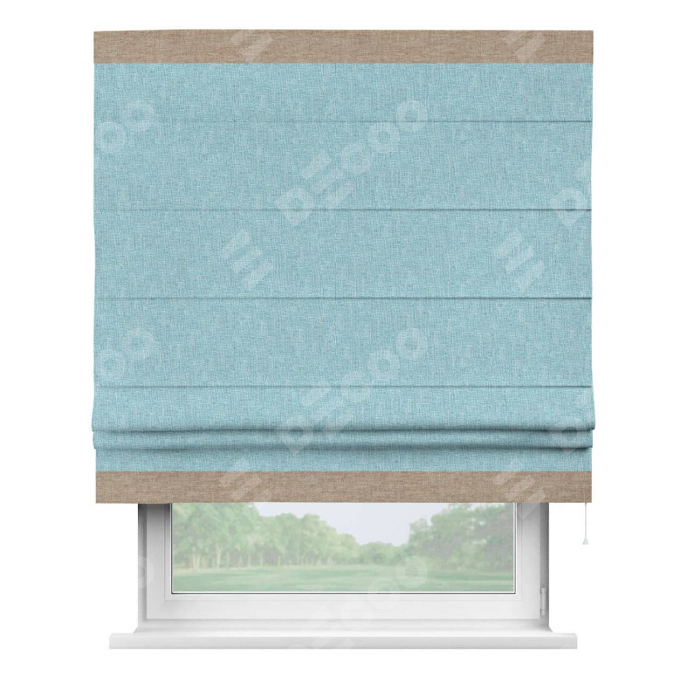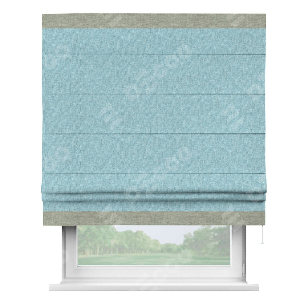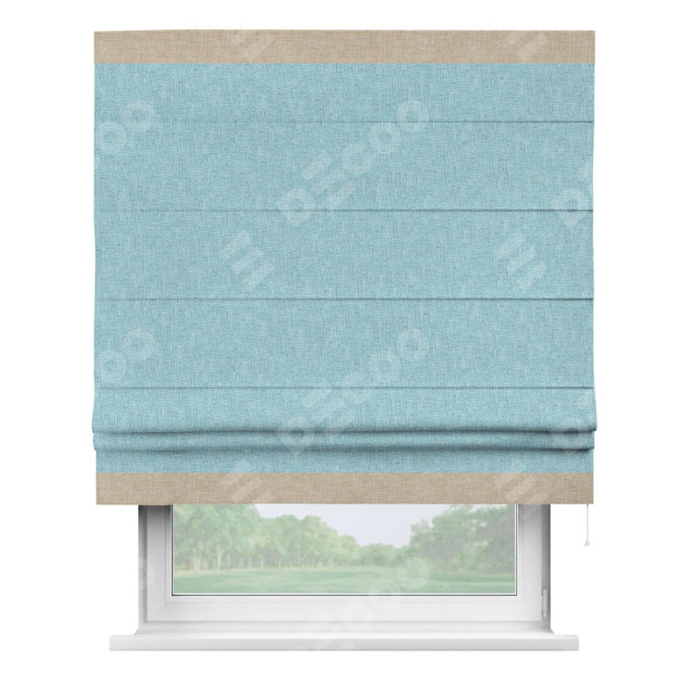 Римская штора «Кортин» с кантом Горизонт, для проема, ткань лён кашемир голубой