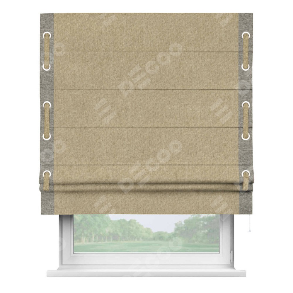 Римская штора «Кортин» с кантом Стрим Дуо (люверсы с пояском), для проема, ткань стиф димаут бежевый