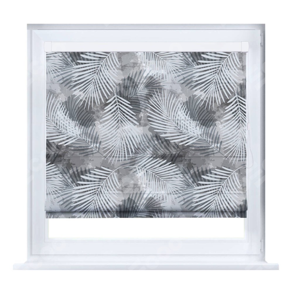 Римская штора производителя «Cortin», устанавливается на створку окна, пошита из ткани блэкаут с нанесением сублимационной печати «Листья в тени». Штора шьётся по индивидуальным размерам, для данного типа римской шторы возможная ширина от 35 до 150 см., высота до 250 см.