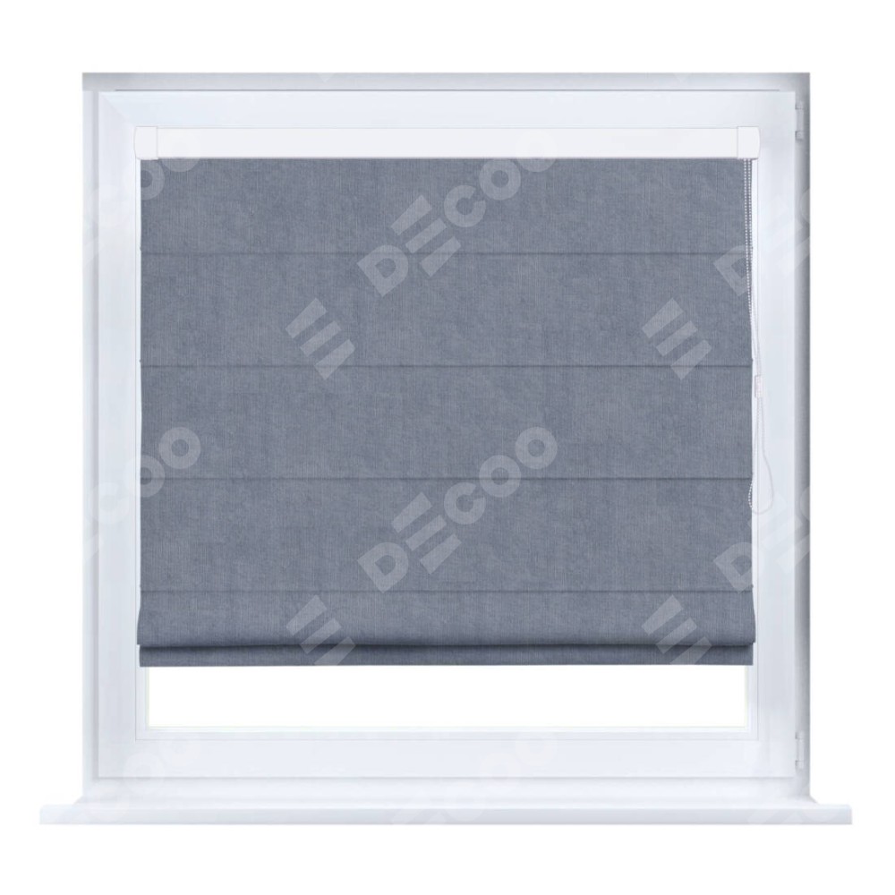 Римская штора производителя «Cortin», устанавливается на створку окна, пошита из ткани канвас васильковый, артикул v-203. Штора шьётся по индивидуальным размерам, для данного типа римской шторы возможная ширина от 35 до 150 см., высота до 250 см.