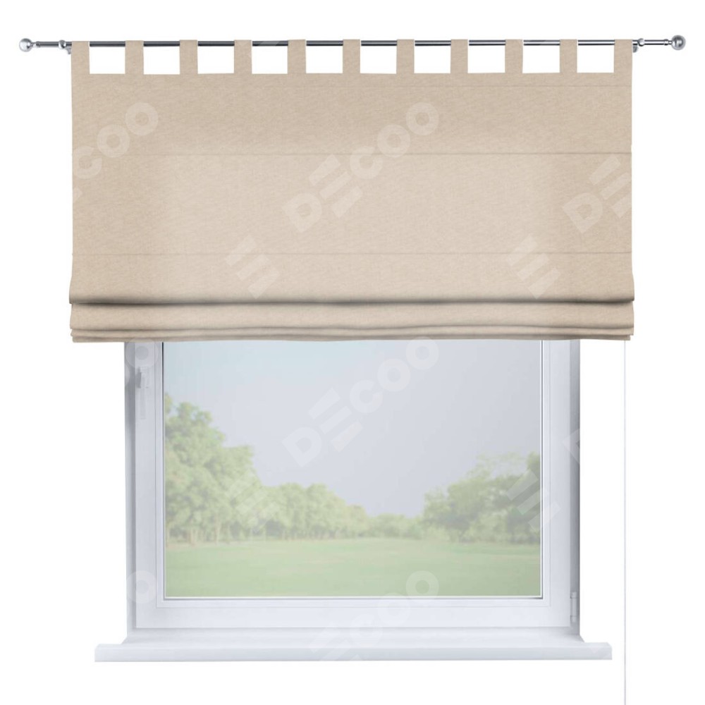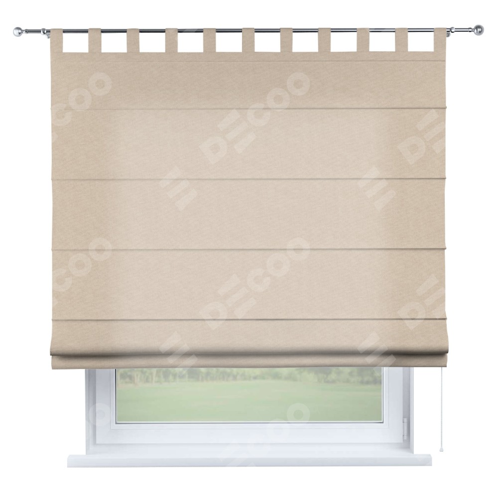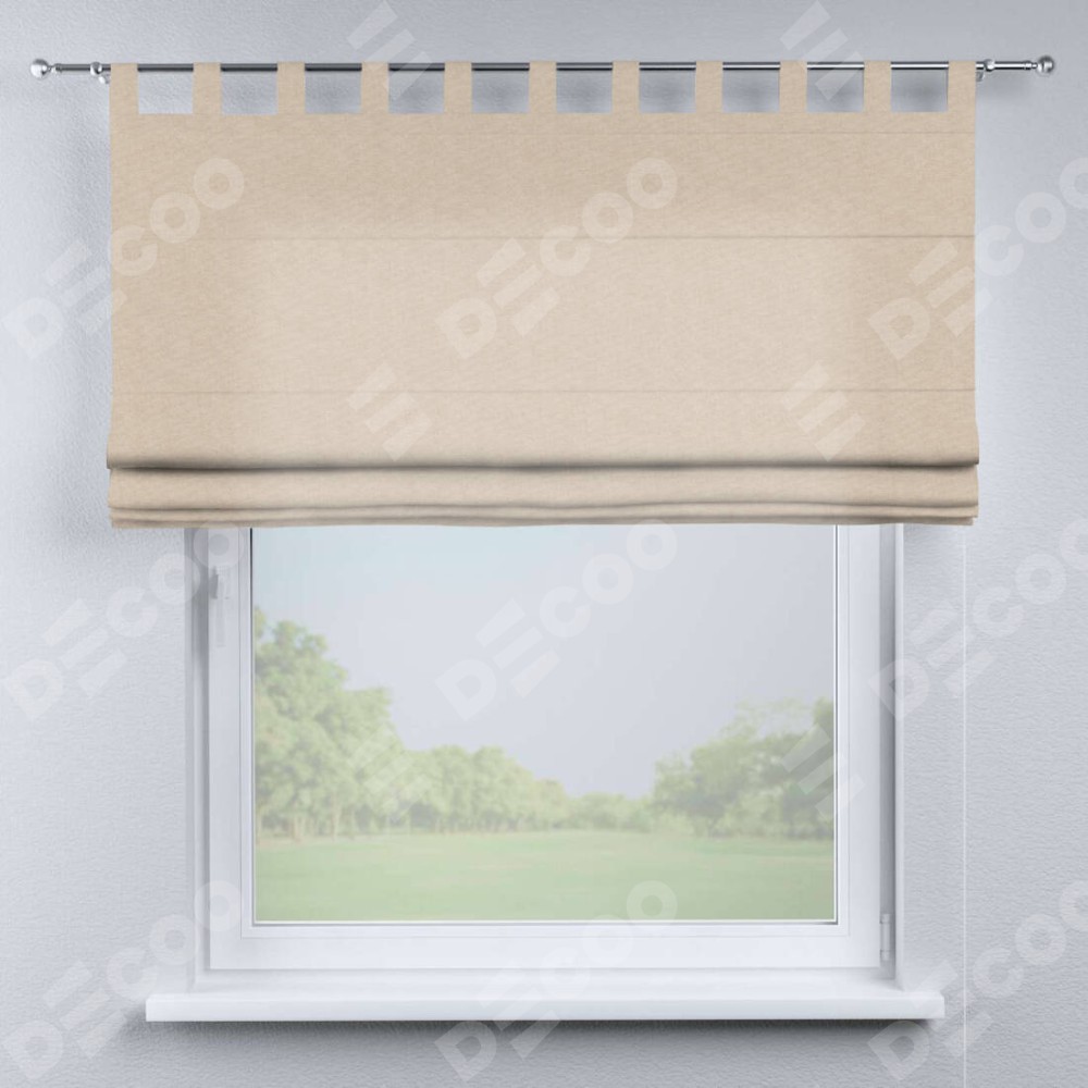 Римская штора производителя «Cortin», используется для проёма, пошита из ткани канвас кофе с молоком, артикул ткани v-07. Данная модель пошита на петлях, комплектуется на выбор круглым карнизом и подходит для монтажа на стену. Римская штора на петлях имеет простую систему регулировки высоты, отличительным преимуществом данной модели является простой способ монтажа. Достаточно повесить ее на трубу и штора готова!