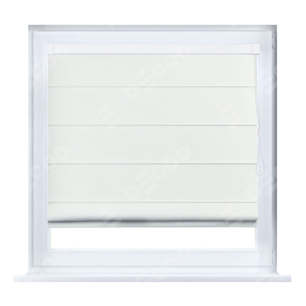 Римская штора производителя «Cortin», устанавливается на створку окна, пошита из ткани канвас молочный, артикул v-93. Штора шьётся по индивидуальным размерам, для данного типа римской шторы возможная ширина от 35 до 150 см., высота до 250 см.