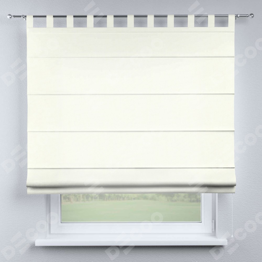 Римская штора производителя «Cortin», используется для проёма, пошита из ткани канвас молочный, артикул ткани v-93. Данная модель пошита на петлях, комплектуется на выбор круглым карнизом и подходит для монтажа на стену. Римская штора на петлях имеет простую систему регулировки высоты, отличительным преимуществом данной модели является простой способ монтажа. Достаточно повесить ее на трубу и штора готова!