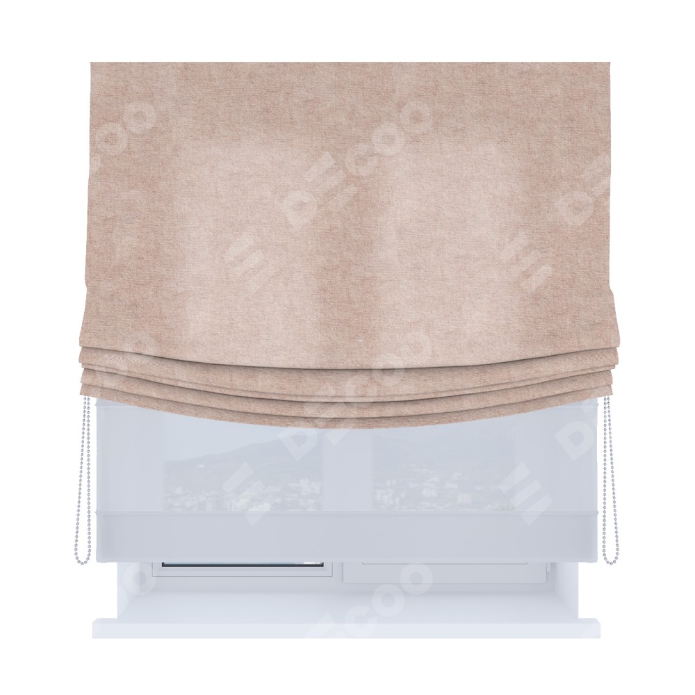 Римская штора день-ночь производителя «Cortin», используется для проёма, пошита из двух полотен, с лицевой стороны канвас пудровый артикул v-35, вторая ткань тюль (по стандарту комплектуется тюль белого цвета артикул V-01). Имеет универсальный механизм и подходит для монтажа: на потолок, на стену и в нишу. Удобное управление каждой шторой отдельно.