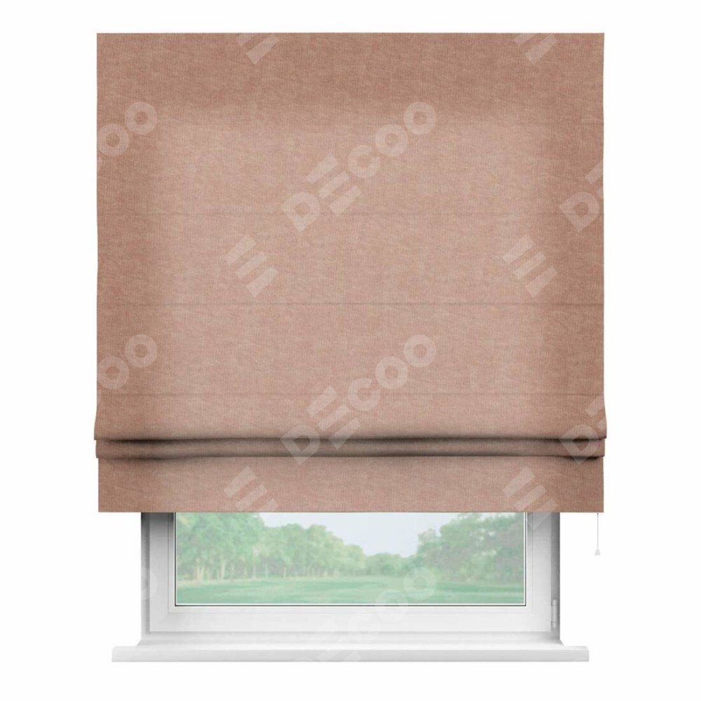 Римская штора производителя «Cortin», используется для проёма, пошита из ткани канвас розовая пудра, артикул ткани v-34. Имеет универсальный механизм и подходит для монтажа: на потолок, на стену и в нишу.