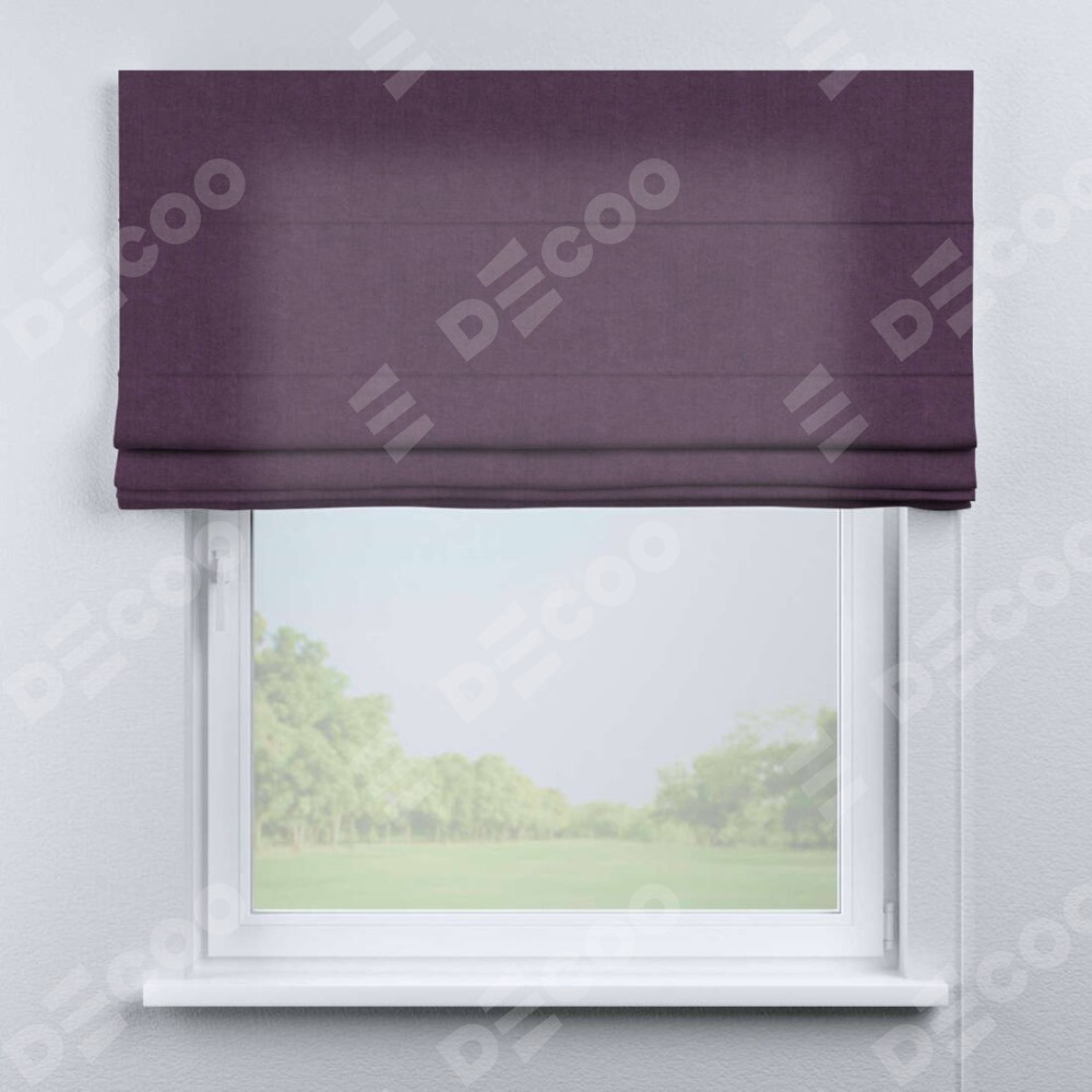 Римская штора производителя «Cortin», используется для проёма, пошита из ткани канвас сиреневый, артикул ткани v-98. Имеет универсальный механизм и подходит для монтажа: на потолок, на стену и в нишу.