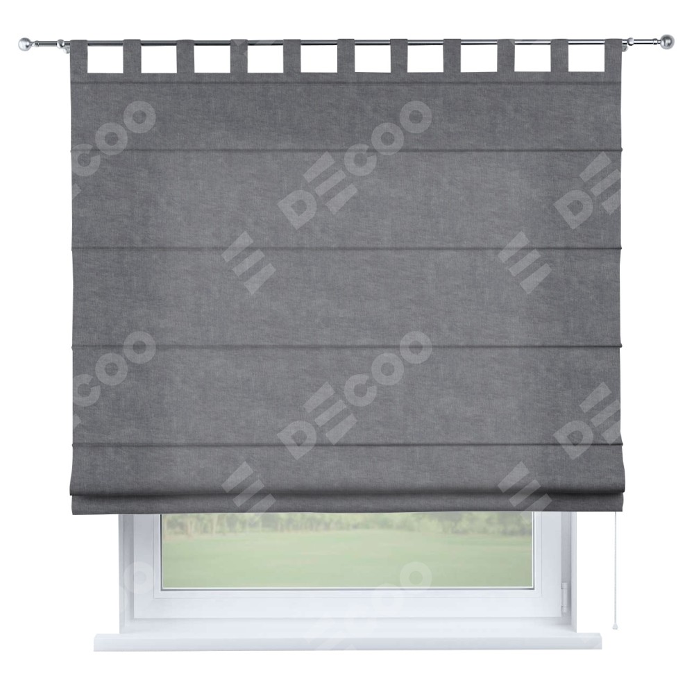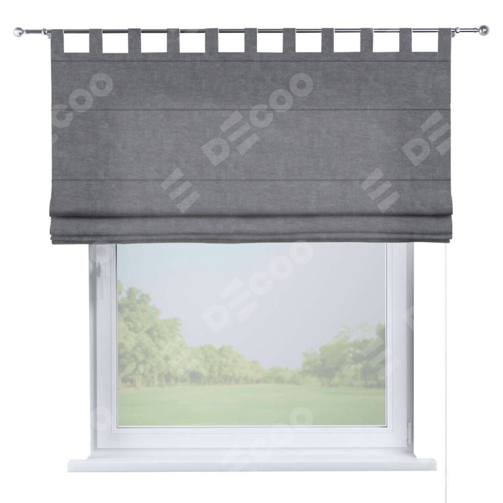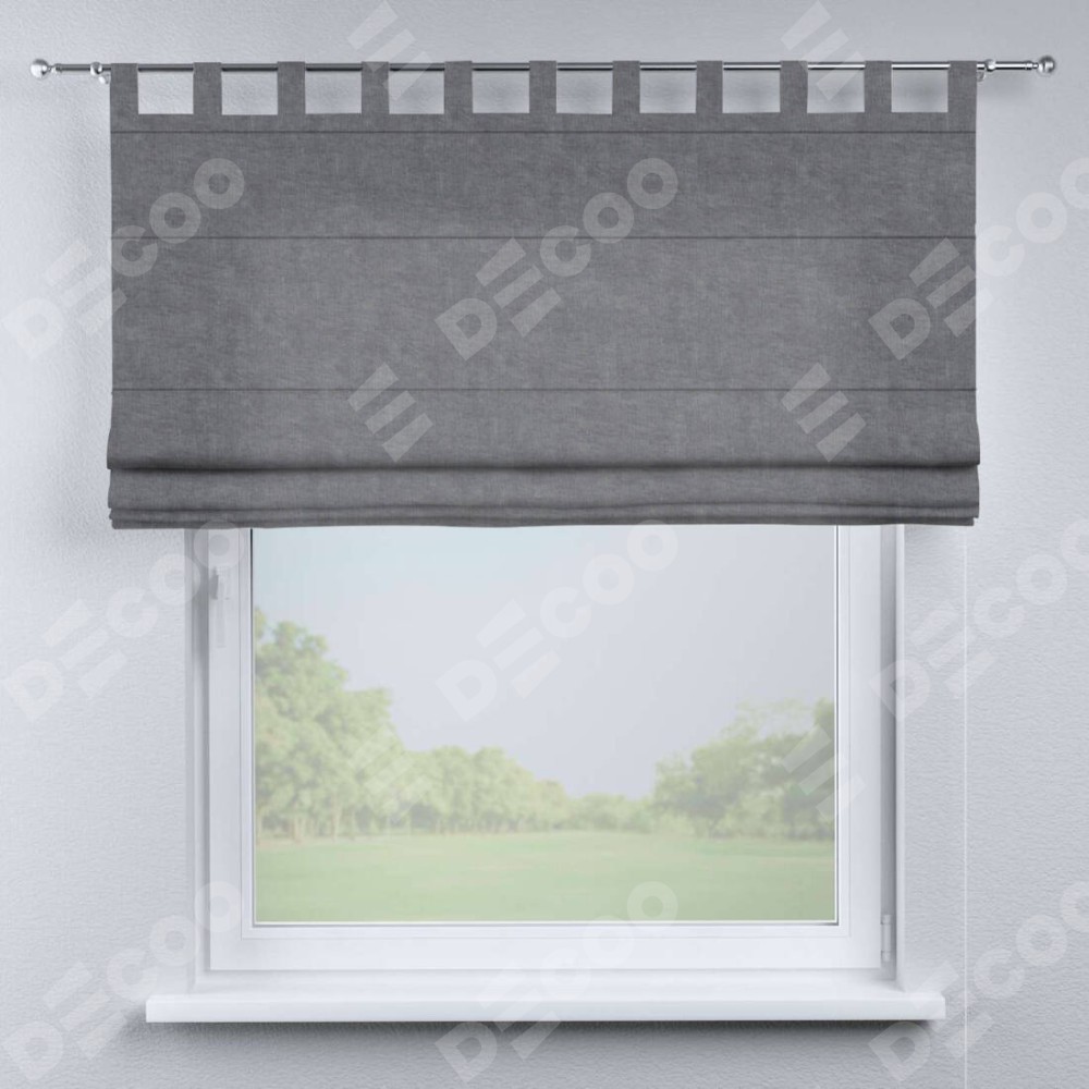 Римская штора производителя «Cortin», используется для проёма, пошита из ткани канвас стальной, артикул ткани v-1082. Данная модель пошита на петлях, комплектуется на выбор круглым карнизом и подходит для монтажа на стену. Римская штора на петлях имеет простую систему регулировки высоты, отличительным преимуществом данной модели является простой способ монтажа. Достаточно повесить ее на трубу и штора готова!