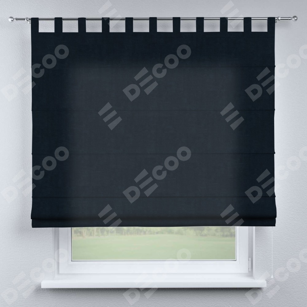 Римская штора производителя «Cortin», используется для проёма, пошита из ткани канвас тёмно-синий, артикул ткани v-206. Данная модель пошита на петлях, комплектуется на выбор круглым карнизом и подходит для монтажа на стену. Римская штора на петлях имеет простую систему регулировки высоты, отличительным преимуществом данной модели является простой способ монтажа. Достаточно повесить ее на трубу и штора готова!