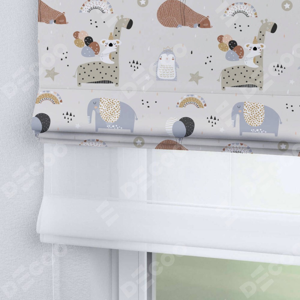 Римская штора «Кортин» день-ночь «Вечеринка животных» отлично подойдёт для интерьера: в детскую.
