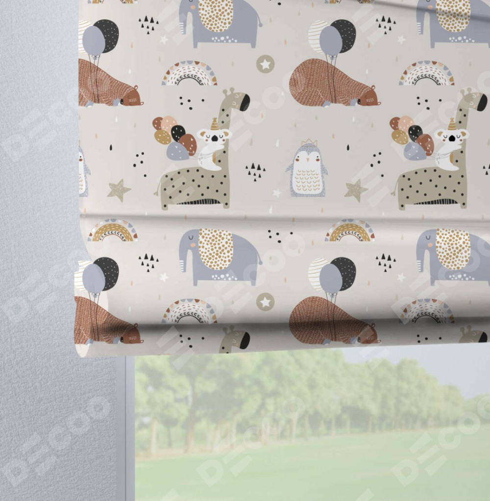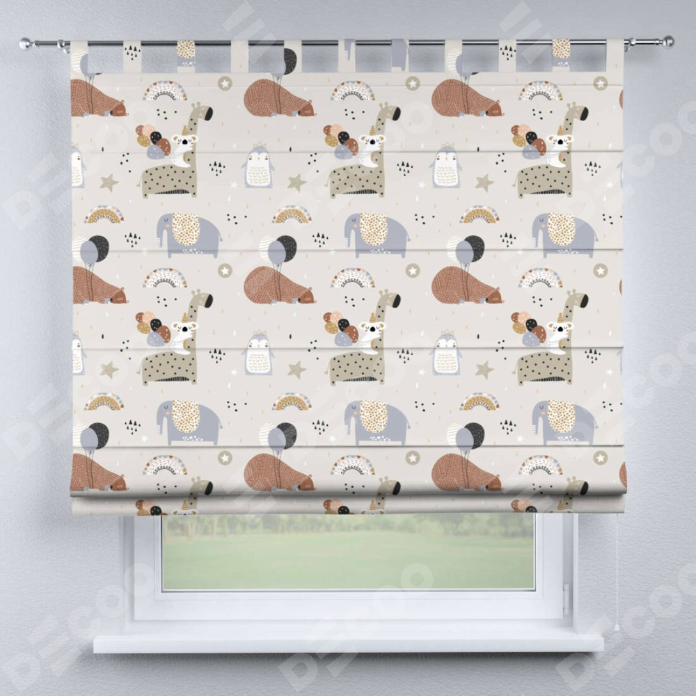 Римская штора «Кортин» на петлях «Вечеринка животных»