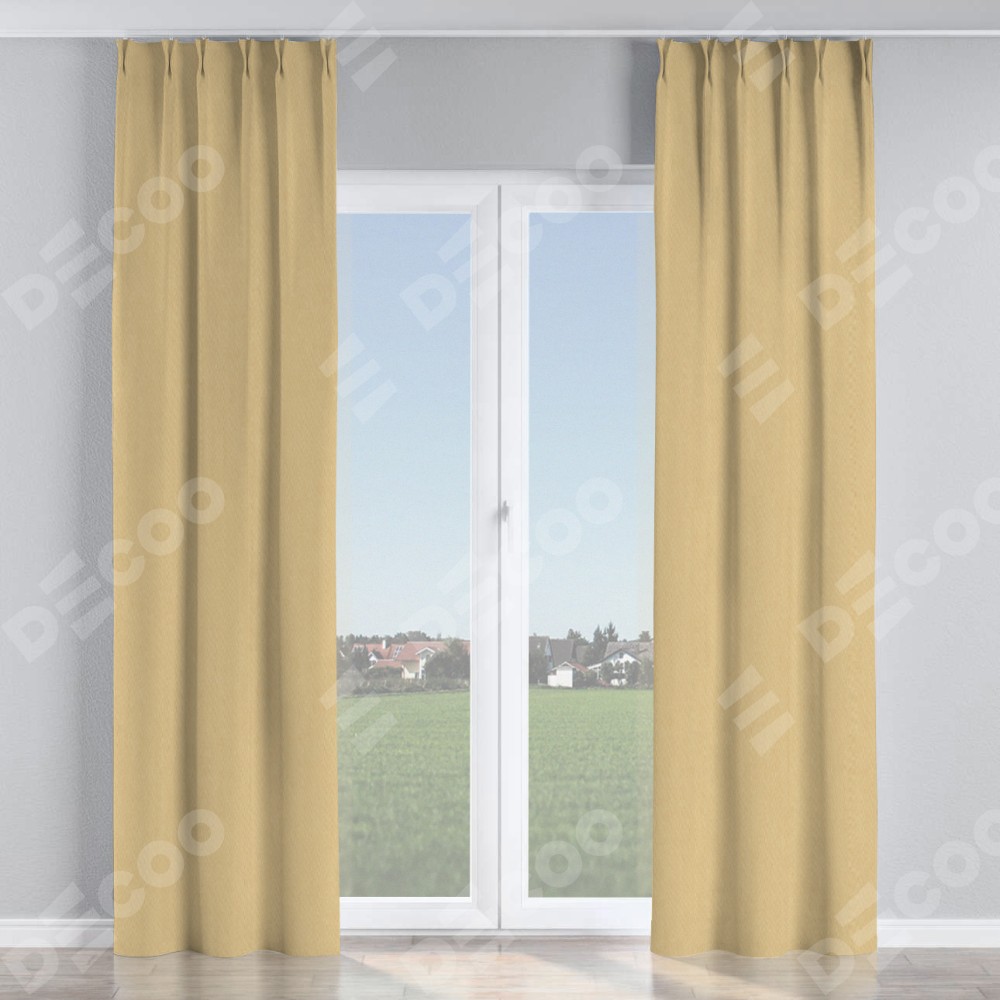 Комплект прямых штор, от производителя «Cortin», пошиты из ткани канвас бежевый, артикул ткани v-96. С изнаночной стороны в верхней части штор пристрачивается шторная лента с декоративными складками «Кустик». Для создания элегантных складок прямые шторы шьются по стандарту с коэффициентом 1:2 (на 100 см. ширины проёма 200 см. ширины ткани).