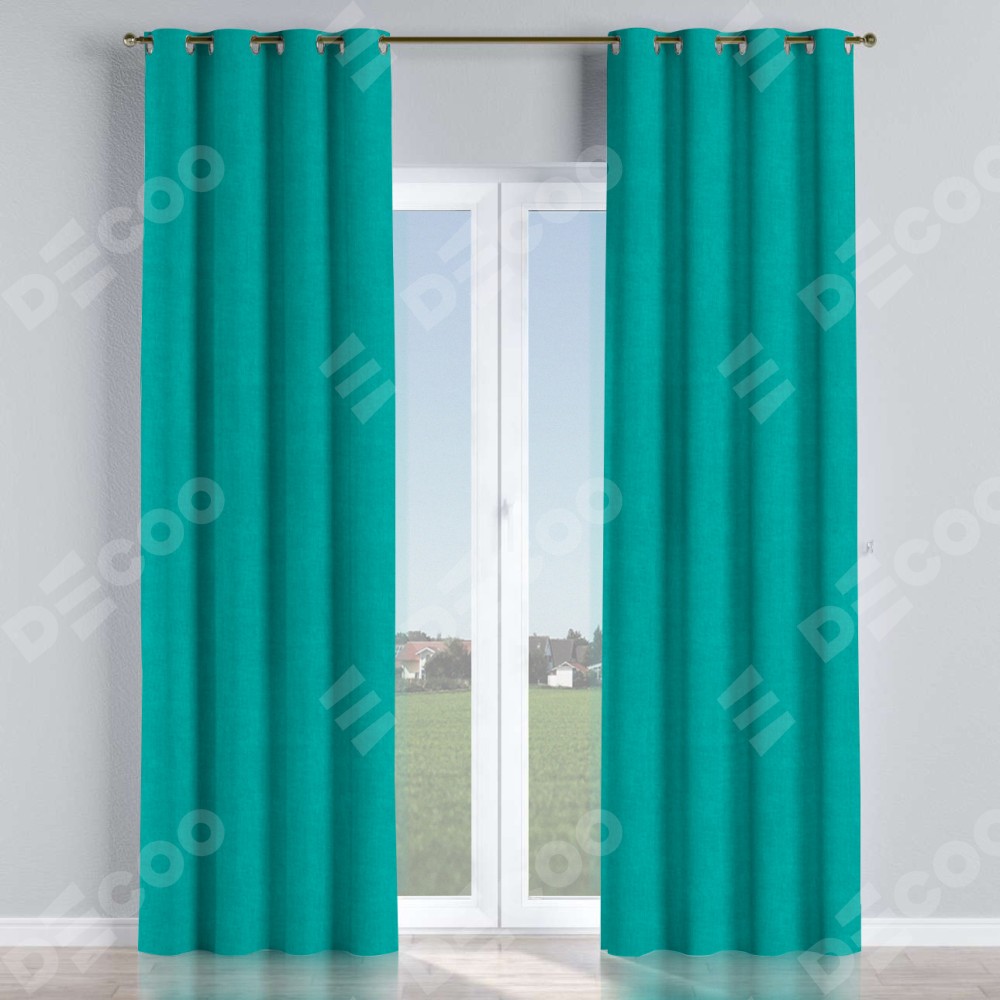 Комплект прямых штор, от производителя «Cortin», пошиты из ткани канвас бирюзовый, артикул ткани v-1048. Данная модель пошита на люверсах, комплектуется на выбор круглым карнизом и подходит для монтажа на стену или потолок. Прямые шторы на люверсах шьются по стандарту с коэффициентом 1/2 (на 100 см. ширины проёма 200 см. ширины ткани), отличительным преимуществом данной модели является простой способ монтажа. Достаточно повесить ее на трубу и штора готова!