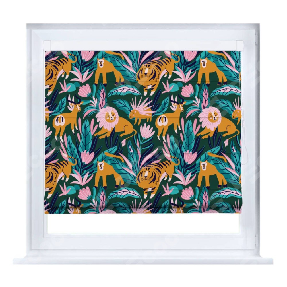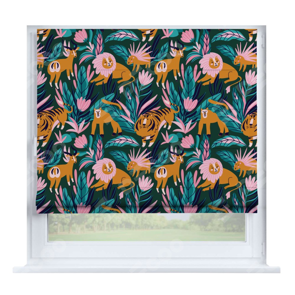 Римская штора производителя «Cortin», устанавливается на створку окна, пошита из ткани блэкаут с нанесением сублимационной печати «Дикие животные». Штора шьётся по индивидуальным размерам, для данного типа римской шторы возможная ширина от 35 до 150 см., высота до 250 см.