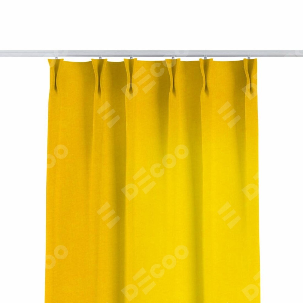 Комплект прямых штор, от производителя «Cortin», пошиты из ткани канвас желтый, артикул ткани v-344. С изнаночной стороны в верхней части штор пристрачивается шторная лента с декоративными складками «Кустик». Для создания элегантных складок прямые шторы шьются по стандарту с коэффициентом 1:2 (на 100 см. ширины проёма 200 см. ширины ткани).