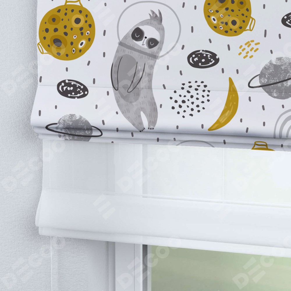Римская штора «Кортин» день-ночь «Ленивец в шлеме»