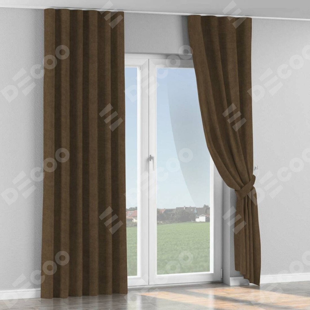 Комплект прямых штор, от производителя «Cortin», пошиты из ткани канвас коричневый, артикул ткани v-29. С изнаночной стороны в верхней части штор пристрачивается шторная лента с декоративными складками «Волна». Для создания элегантных складок прямые шторы шьются по стандарту с коэффициентом 1:2 (на 100 см. ширины проёма 200 см. ширины ткани).