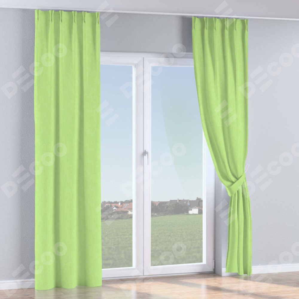 Комплект прямых штор, от производителя «Cortin», пошиты из ткани канвас липовый, артикул ткани v-207. С изнаночной стороны в верхней части штор пристрачивается шторная лента с декоративными складками «Кустик». Для создания элегантных складок прямые шторы шьются по стандарту с коэффициентом 1:2 (на 100 см. ширины проёма 200 см. ширины ткани).