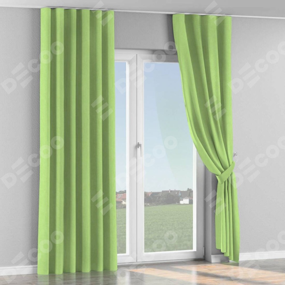 Комплект прямых штор, от производителя «Cortin», пошиты из ткани канвас липовый, артикул ткани v-207. С изнаночной стороны в верхней части штор пристрачивается шторная лента с декоративными складками «Волна». Для создания элегантных складок прямые шторы шьются по стандарту с коэффициентом 1:2 (на 100 см. ширины проёма 200 см. ширины ткани).