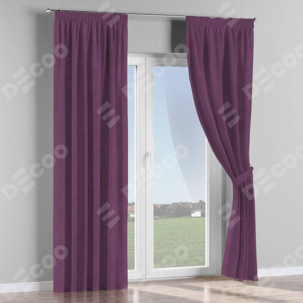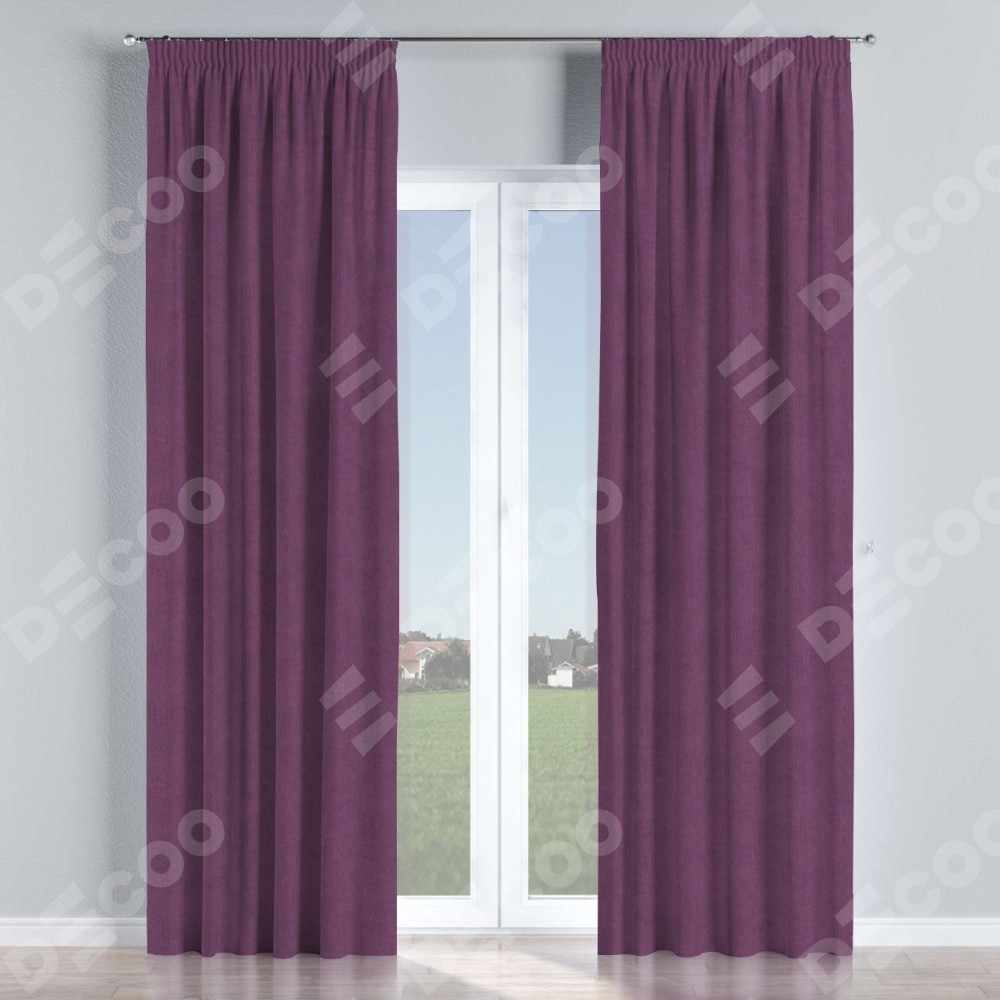 Комплект прямых штор, от производителя «Cortin», пошиты из ткани канвас сиреневый, артикул ткани v-98. С изнаночной стороны в верхней части штор пристрачивается шторная лента с декоративными складками «Карандаш». Для создания элегантных складок прямые шторы шьются по стандарту с коэффициентом 1:2 (на 100 см. ширины проёма 200 см. ширины ткани).